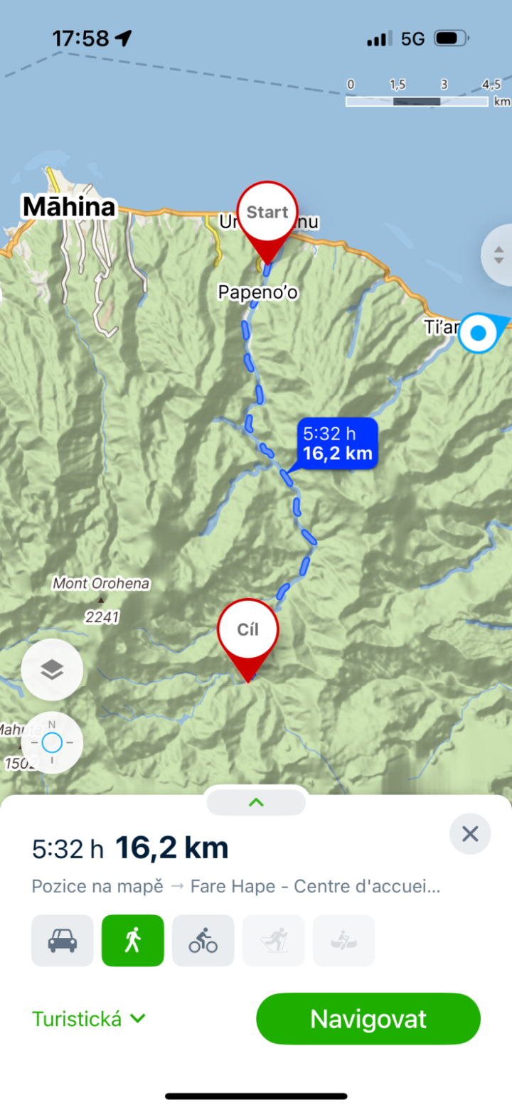 Uprostřed je kemp s ubytováním v klasických pokojích (mají 2 “kategorie”), takže klasika Booking. Tam bych dal klidně 2 noci a kouknul po okolí. Co bych dal jako další etapu, tak Mt. Aorai až na vrchol s přespáním na jedné z chat. Stan bych nebral. Max nějakou karimatku a spacák, případně pro sichr celtu. Pak přesun trajektem na Moorea, ta by se dala přejít celá za 3 dny (cest je tam přes hory mraky).