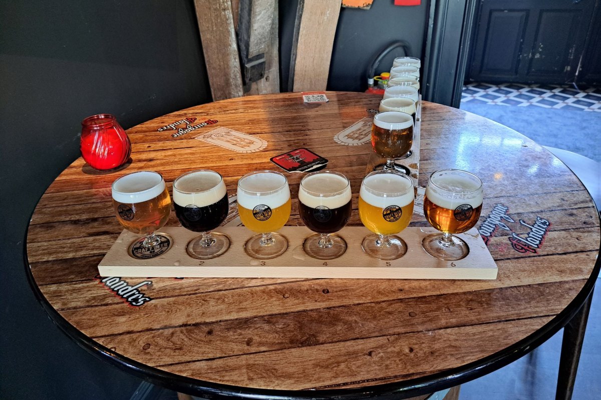 My ale míříme na pivo jinam. Ve městě je známý pivovar Bourgogne des Flandres (https://www.bourgognedesflandres.be/en), který je na svém místě od roku 1825. Dáváme si testovací set 6x12cl za 17,5€ a odvalíme se na hotel. Pro pivovar je typické pivo pojmenované podle pivovaru (Bourgogne des Flandres), jde o směs višňového lambiku a tmavého svrchně kvašeného piva. Chuť je poněkud neobvyklá, na jednu stranu sladko-kyselá, ale zároveň třeba proti Kaastelu a spol dost výrazně „pivní“.