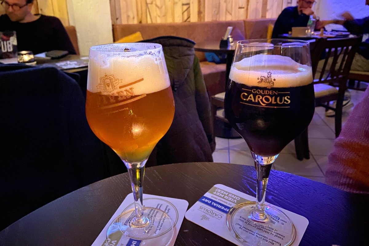 Najednou je večer, jsme uchození a po celém odpoledni na dešti toho máme už dost. Jdeme tak na skok zpět na hotel a potom na véču. Máme rezervaci v jednom z bister nedaleko centra, v rámci lokace jsou ceny slušné a jídlo v pohodě. Nemá tu člověk pocit, že spadl do turistické pasti. Poté už je to jen za roh do Little Derilium. Menší pobočka známého Derilium baru je možná i lepší varianta. Není tu tolik plno a je tu 25 píp, kromě klasiky v podobě Derilium piv, je tu klasický průřez belgickými pivy. Jen pokud jste zatvrzelý fanda českého ležáku, moc variant zde nečekejte (stejně jako skoro všude v Belgii).