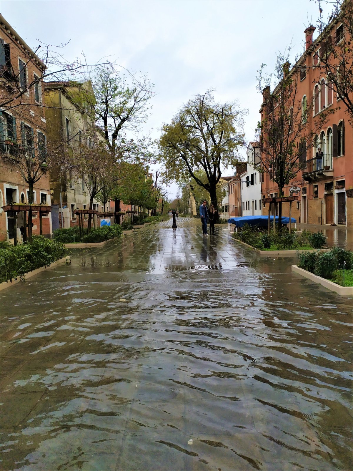Hned první ráno v Benátkách nás ale čekal šok. Když jsme se totiž vzbudily, venku na nás čekalo malé překvapení. Ulice, ve které jsme bydlely byla zaplavená přibližně půl metrem vody a my byly vděčné, že jsme si prozřetelně vybraly bydlení v prvním patře. No nic. Nazuly jsme si holinky, přes ně natáhly pytle na odpadky, protože voda nám sahala nad kolena, a vydaly jsme se na průzkum města.