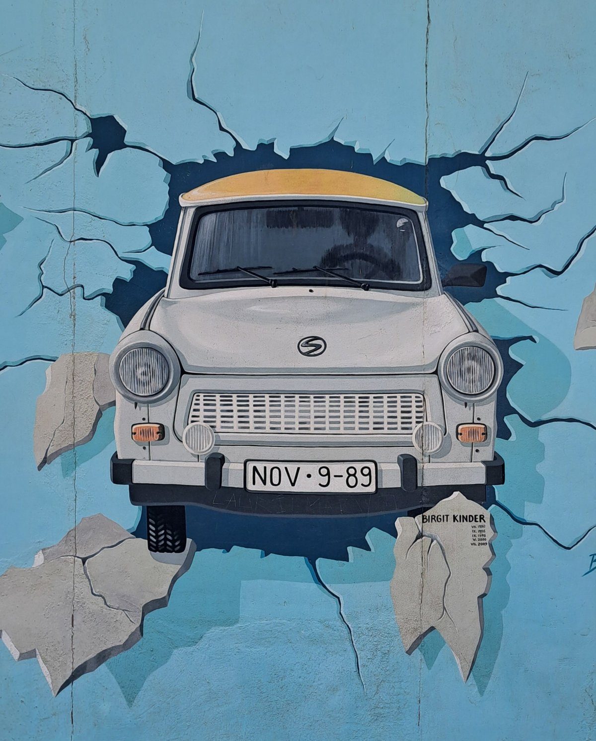 Pokud budete po svých, stále za nosem, pokračovat, můžete dojít k typicky turistickému místu, k Checkpointu Charlie, který hraničil po 2. světové válce východní a západní Berlín. Najdete zde typicky bílou strážnici, před ní je hromada pytlů s pískem. V okolí najdete obchody se suvenýry a na jedné straně křižovatky místo s pozůstatky, ale také historickými fotografiemi, jak místo vypadalo v jednotlivých obdobích. Cestou k Berlínské zdi můžete také navštívit Trabant muzeum (TrabiWorld Berlin).