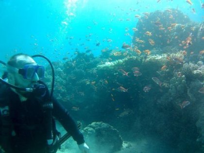 Úterek má být opět odpočinkový den a tak k němu i patřičně přistupuju. Budím se a odcházím snídat až v nejzašší čas. Po snídani se jdu projít už sluncem zalitým resortem a dojdu až k Diving Centru. Tam se dávám do řeči s Tahou - místní Diving Master. Slovo dá slovo... a dohodu. V 11:30 sraz ve vedlejším hotelu Taba Hilton u lodi. Takže se na hoďku začtu na pláži a pak přes zastávku pro vybavení odcházím na smluvený čas k lodi. Dostávám neopren, brýle, ploutve a instrukce na první ponor. Nasazujeme kyslíkové bomby a už se při pobřeží učím jak na to. Netrvá dlouho a plavu pod vodou. Učím se znaky, vyrovnávání tlaku, nádechy a výdechy. Paráda, potápím se. Jdeme do větších hloubek až ke korálovému útesu. Je to ještě krásnější svět než při šnorchlování, na které jsem z předchozích cest zvyklej. Rybky, barvičky, jiné druhy živočichů. Perutýn! Plujeme dál. Hvězdice! A tak dál, medúzy, a tak dál. Dělám si pár fotek a videí. Po dvaceti minutách se na pokyn vracíme k pobřeží. Vynoříme se, dostanu pět, zaplatím 50 a spokojeně odcházím. Mít čtyři dny tak jdu do PADI. Na pokoji dávám sprchu a vstřebávám zážitek. Okolo 15-té hodiny si jdu vychutnat zbytek teplého dne na pláž. Čtu si knížku, koupu se a vychutnávám pivko. Následně se seznamuji s partičkou Slováků, probíráme lety a zdejší možnosti vyžití. No mě zbývá už jen jeden celý den a ten je jasný. Proto v 18 končím. Jdu si zavolat, něco zapsat. Pak se trošku neshodnu na recepci kolem snídaně s sebou. Ale je už 8 tak jdu spát. Proč? Protože půl čtvrté ráno...
