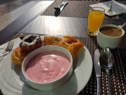 Po šesti hodinách mi zvoní budík. Spal bych dál, ale nechci si nechat ujít snídani. Stejně si ji zase nabalím i na pokoj. Je jasno, řekl bych tak 25 stupňů, ideální podmínky na standardní dovolenkový den. Zabalím se, koupím chipsy a odcházím na pláž. Koupačka, leháro, kniha a cigáro. Tak tak a tak a tak. Polední pražení jdu přečkat k tabletu k Otázkám Václava Moravce. Pak si volám s Jani, pak píšu zápisky a pak se zase vracím k bazénu a na pláž. V sedmnáct hodin zapadá slunce. Odcházím se vysprchovat a připravit na zítra. Dopíšu dnešní den a asi už to doflákám do rána.