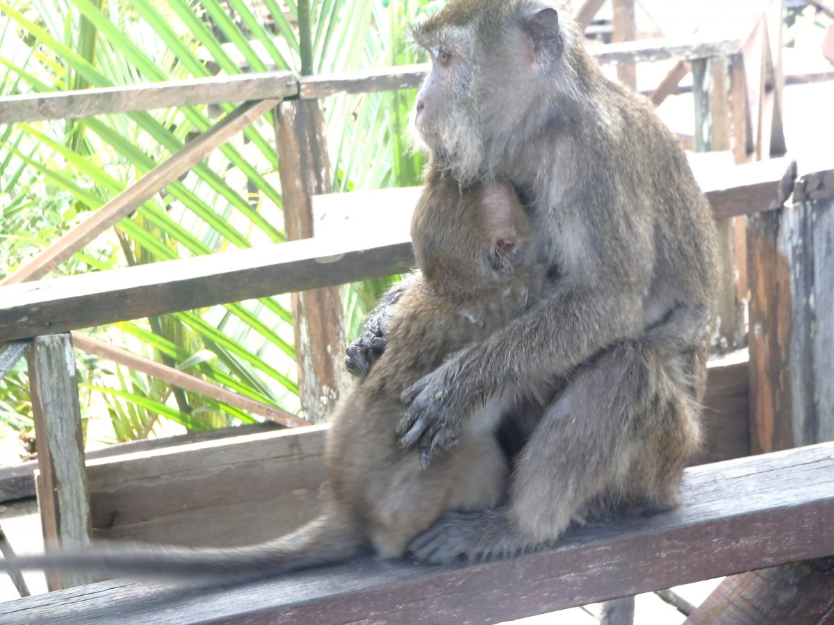 U hotelu cestou na malou plážičku pozorujeme hulmaní rodinku. Hulman stříbrný je jedním z pěti druhů hulmanů žijících na Borneu. Zajímavé u něj je zbarvení jeho mláďat. Na rozdíl od šedé srsti svých rodičů jsou mladí hulmani stříbrní sytě oranžoví a tím jsou také mnohem lépe vidět. Příroda to tak zařídila zřejmě proto, aby v případě nebezpečí či pádu potomka ze stromu mohla matka své mládě rychleji nalézt a reagovat. ¨