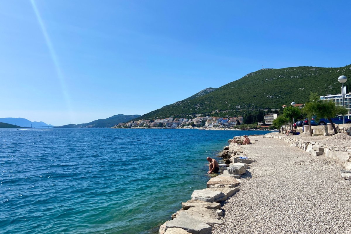 Odpoledne jedu na docela dlouhý výlet. Cílem je město Neum, což je jediné bosenské letovisko u moře🏝. Cesta sem je docela dlouhá, naštěstí od města Stolac dál už vede pěkná nová silnice. Nechávám auto na parkovišti, rozplácnu se chvíli u vody a je mi fajn⛱. Zkouším i koupačku, je to pěkná ledárna🥶, ale ponořil jsem se celý. Připadal jsem si jako na Baltu😄. Čas tu utíká nebezpečně rychle. Na skok ještě přejíždím na protější poloostrov Klek a pak už je čas se vrátit. Po cestě zpět se ještě zastavuji u vodopádů Provalije a potom už večer přijíždím do svého dočasného domova.