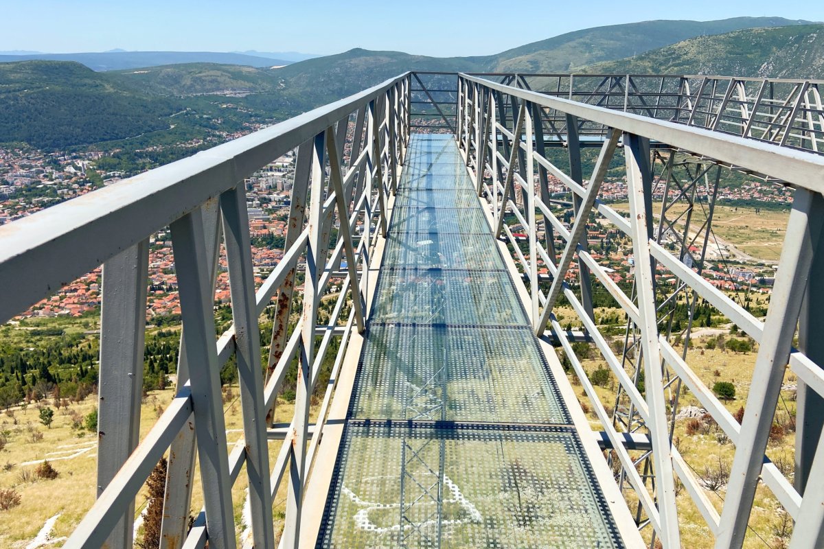 Mostarská věž míru mi přijde zajímavá, protože nabízí krásný výhled na město. Asi do poloviny cesty jede výtah, ale pak dobrou stovku schodů musí člověk ještě po svých. Škoda, že se nedá jít nikam ven, ale i přes sklo je pěkný pohled.