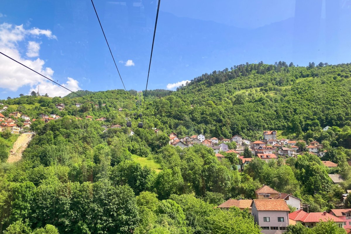 Kopec Trebević je v Sarajevu naprosto ikonické místo. Téměř 2km dlouhá lanovka🚡 mě vyváží do horní stanice ve výšce přes 1100m nad mořem. Mimochodem, turisté to mají o dost dražší než místní. Teda teplo je překvapivě i tady.