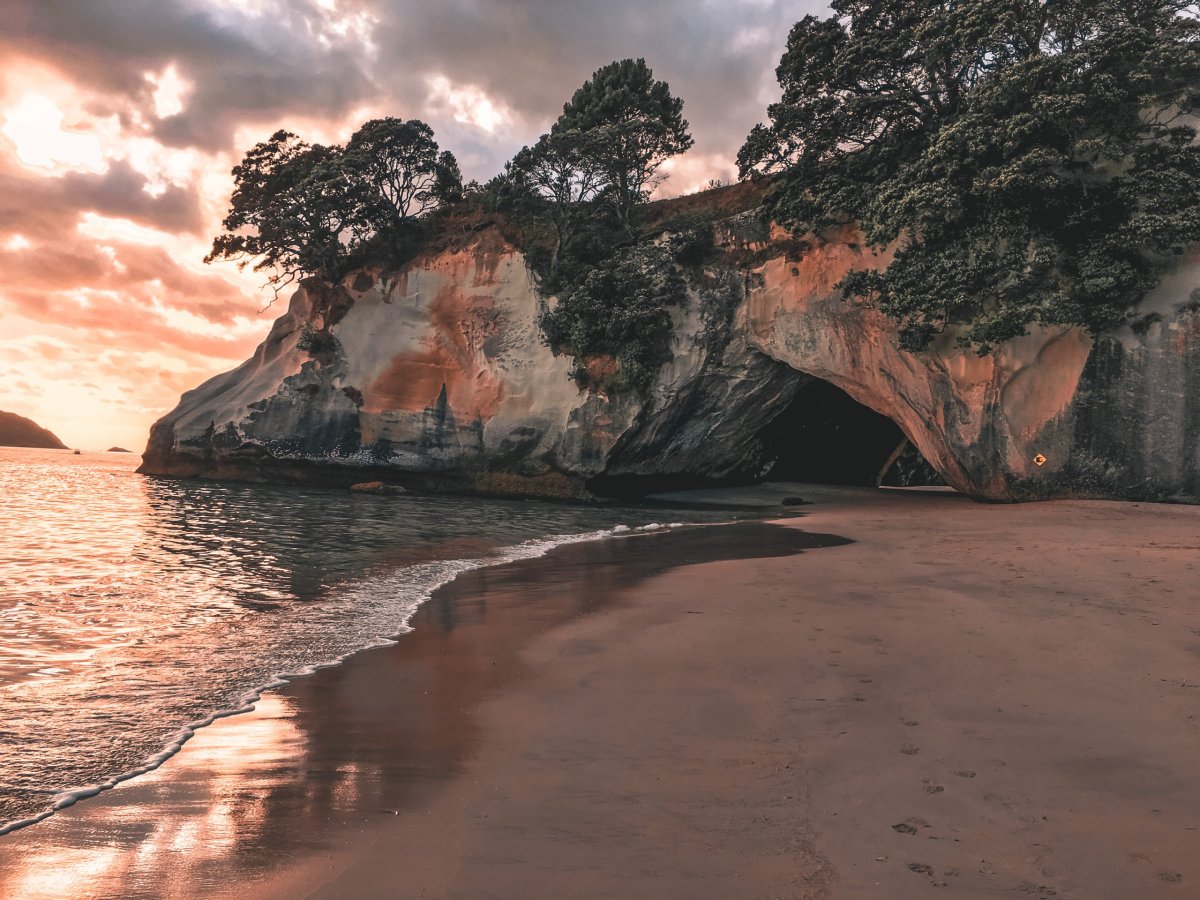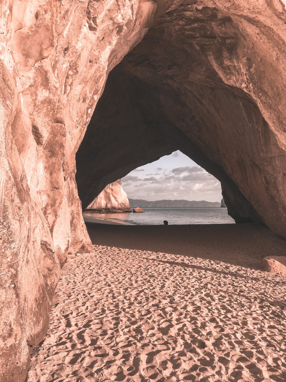 Z pláže vedl hodinový trek na nejznámější místo Coromandelu, kam míří turisté z celého světa, jen aby viděli "bránu do Narnie". Pokud se na Cathedral Cove vydáte v 6 ráno jako my, budete mít to kouzelné místo jen pro sebe. Film Narnie který místo proslavil, jsem viděla jako malá a nikdy by mě ale nenapadlo, že i já se podívám do toho "druhého světa". A že to opravdu byl jiný svět. Východ slunce stále čaroval s barvami na obloze, pláž byla prázdná a ve slavném skalnatém oblouku stál pouze ten osamocený kámen. Na Zélandu si opravdu stojí za to přivstat! :)