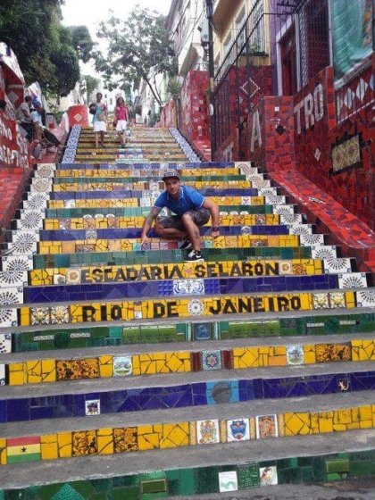 Vstávám první prazvláštně už v 6 ráno. Abych nebudil, trávím 2 hodiny na terase a při té příležitosti stahuju fotky do notebooku. Po probuzení všech balíme, platíme ubytko a loučíme se s naší lokalitou tam, kde jsme se s ní i přivítali. Na freshi a na Acaí. Stejně jako když jsme přijeli, tak i když odjíždíme je podmrakem. První den nepršelo, ale dnes jo. Dnes nám to už ale tolik nevadí. Po 13 té hodině stopujeme taxi a přemlouváme řidiče, ať nás za stejnou sazbu na letiště ještě na 5 minut vysadí u schodů pana Selaróna. Přikyvuje. U této nové Unesco památky a životního díla svérázného umělce se prostřídáme s prohlídkou a fotografováním a po 5ti minutách opravdu pokračujeme až na letiště. Před halou si Richard nechá vyčistit polobotky a máme hodinu do odletu. Odbavujeme se, odlétáme. 10 ti hodinový let opět rozdýcháme, co nám taky zbývá, že? Mezipřistání v Paříži, cigáro a teď už 25.4. odpoledne dosedáme v Praze. Loučíme se u pásu s kufry. Mě vyzvedává Janina a cestou do práce k předání shopu nás zavalují kroupy. No to je uvítání! :-)