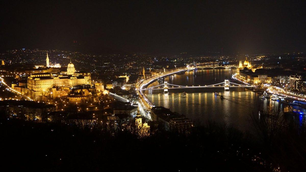 Přemýšleli jsme, co budeme dělat dál. Už byl večer a památky zavíraly. Nakonec jsme se rozhodli pro výšlap na kopec Gellert. Je vyhlášený tím, že z vršku jsou nejkrásnější pohledy na večerní/noční Budapešť. Po cestě jsme prošli kolem nádherné budovy Várkert Bazar, která slouží jako kulturní centrum, a dá se skrz ni projít od Budínského hradu dolů hradními zahradami. Při výstupu nahoru projdete ještě kolem zajímavé sochy sv. Gellerta. Musím říct, že jsme trochu podcenili naše síly, protože po krátkém spánku, přejezdu a už nachozených pár kilometrech po městě jsme na vrcholek kopce Gellert vyšli mokří, jako kdyby nebylo 6 stupňů, ale 36 stupňů. Ale musíte brát v potaz, že od Matyášova chrámu jsou to 3 km, nejprve z kopce k Dunaji a pak zase do strmého kopce. Musím ovšem říct, že to za to stálo. Výhled na celé osvětlené město je nádherný a opravdu se vyplatí nechat si tohle na večer. Na samotném vršku kopce Gellert se nachází socha Svobody a Citadela, kam se ovšem nedá jít. Přímo pod kopcem Gellert u Dunaje se nachází hotel Gellert, ve kterém jsou asi druhé nejslavnější lázně v Budapešti a kdo by to byl čekal, jmenují se Gellertovy. Ty ovšem zavírají už ve 20:00, a proto jsme je nechali na druhý den.