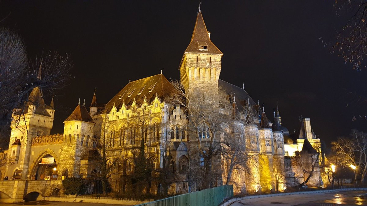 Jestli budete v lázních Szechenyi večer, tak ještě doporučuji kouknout zvenku na krásně osvětlený hrad Vajdahunyad, který se nachází v tom samém městském parku.
