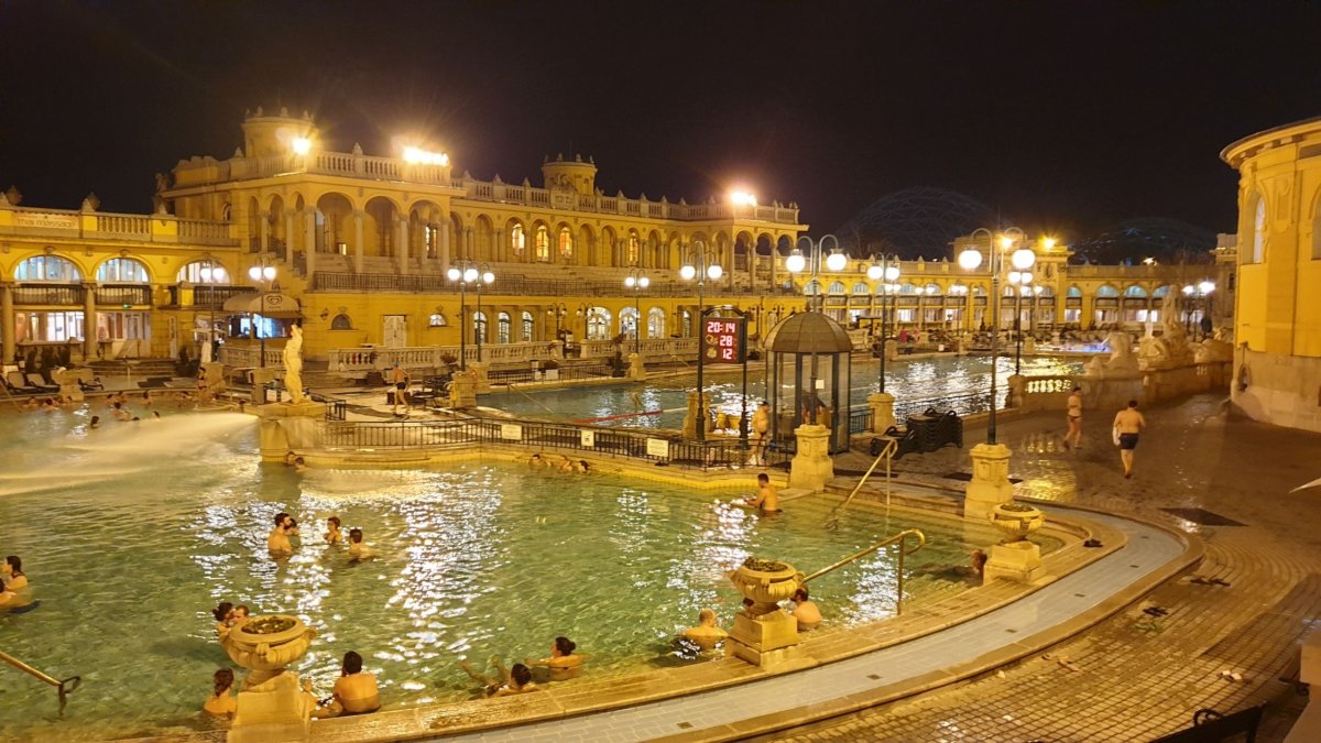 Szechenyi lázně můžu s čistým svědomím naprosto doporučit. V recenzích na internetu je nejčastější stížnost na přeplněnost, což byl také jeden z důvodů, proč jsme si na jejich návštěvu vybrali čtvrtek večer. Lidí tam bylo tak akorát. Praktické informace k návštěvě Szechenyi - otevírací dobu mají do 22:00, takže jsou ideální na večerní koupačku po celém náročném dni. Vstupné se liší podle toho, jestli vám stačí skříňka na uložení věcí, a nebo chcete svoji vlastní kabinku. Za celodenní vstup zaplatíte tedy v rozmezí 450Kč - 500Kč. Ručník půjčují za 4000Huf - 2000Huf jako záloha, kterou vám vrátí, 2000Huf za půjčení, takže ty u sebe mějte připravené, až se převlečete. Jednu věc určitě musím doporučit a to - vezměte si vlastní pantofle/žabky. Chodili jsme po areálu bosí a říkal jsem si, že jestli tohle neodnesu plísní chodidel, tak už nikdy nic. Plus to samozřejmě klouže a venku šíleně zebou nohy. Jinak jsou lázně Szechenyi naprosto parádní. Jeden velký venkovní bazén, kde když je venkovní teplota opravdu mrazivá, tak si připadáte jako v ráji. A 11 vnitřních bazénů, které jsou všechny moc pěkné, a hlavně s opravdu luxusně horkou vodou. A zvláště a to jsem ocenil až zpětně po návštěvě Gellertových lázní, se v Szechenyi dá dobře orientovat.