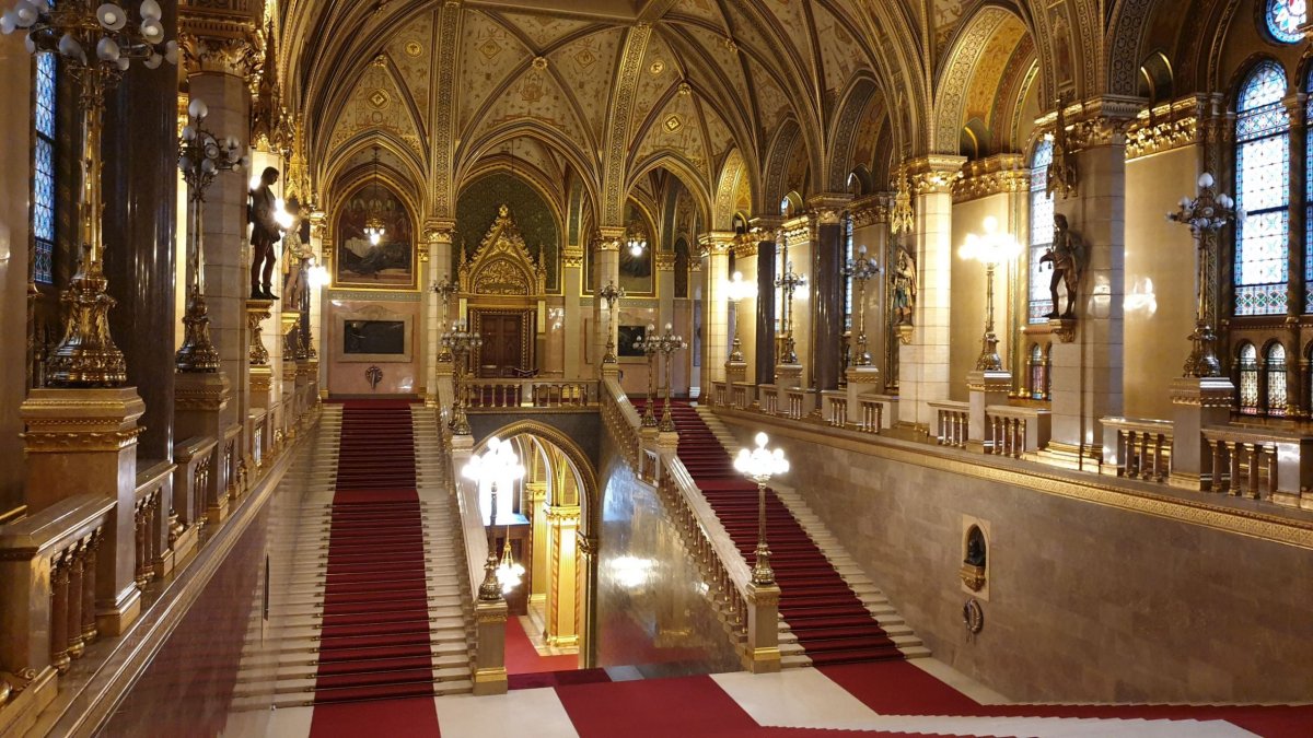 Dál už to bylo ale veselejší, protože jsme došli k jedné z nejimpozantnějších staveb na světě, a to k budapešťskému Parlamentu. Měli jsme objednanou prohlídku v angličtině a byli jsme za to rádi, protože na místě by se dala koupit maximálně tak v italštině. Takže určitě doporučuji koupit online s nějakým předstihem. V únoru nám stačil týden, ale v sezóně to asi bude horší, protože i teď nás překvapilo, jak moc tam bylo lidí. Prohlídka je každopádně zajímavá. Trochu nás zklamalo, že vychází jenom tak na 30 minut a průvodkyně vypadala a mluvila unaveněji než my. Prohlídku ale určitě vřele doporučuji. Hned naproti Parlamentu nepřehlédněte nádhernou stavbu Muzea etnografie. Vím, že o nádherných stavbách píšu často, ale opravdu jich je v Budapešti plno. Když už budete u Parlamentu, tak ještě koukněte na sochu Imre Nagyho, jednu z hlavních postav maďarského povstání v roce 1956.