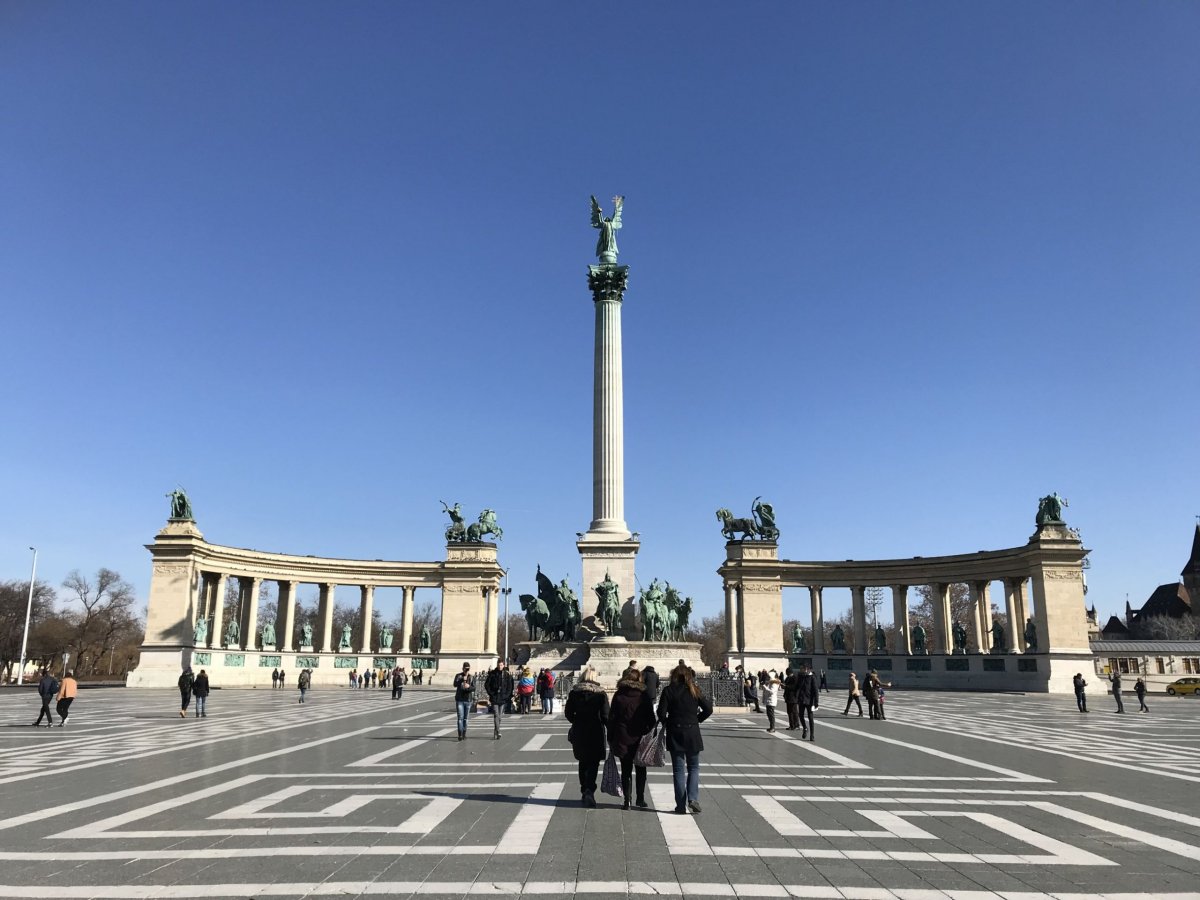 Potom, co jsme naplnili naše batohy k prasknutí, jsme se vydali metrem na náměstí Hrdinů. Přímo na náměstí Hrdinů se nachází Památník tisíciletí s 36 metrovým sloupem, který oslavoval v roce 1896 tisícileté výročí příchodů Maďarů do vlasti. Pod památníkem se nachází hrob neznámého vojína. Na obou stranách náměstí naleznete jednu krásnou budovu, Muzeum krásných umění a Sál umění. Poté jsme překročili most do městského parku Városliget. Pokud se vám povede dorazit do Budapešti v zimních měsících, tak si tady můžete zabruslit na veřejném kluzišti. Hned za ním se nachází hrad Vajdahunyad. Jde o repliku transylvánského hradu Hunyad ze začátku 20. st., ale i tak vypadá nádherně. Za malý poplatek můžete vylézt na Bránovou věž, ze které budete mít hezký pohled na park a nádvoří hradu. Nebo můžete navštívit Jákskou kapli. Ta má ovšem otevřeno jen na pár hodin tři dny v týdnu. Dále se v hradu nachází Zemědělské muzeum, zajímavá socha Anonyma a Apoštolská věž s vyhlídkou na město. Do Apoštolské věže ale můžete jenom s průvodcem, prohlídky jsou každou celou hodinu až do 16:00.