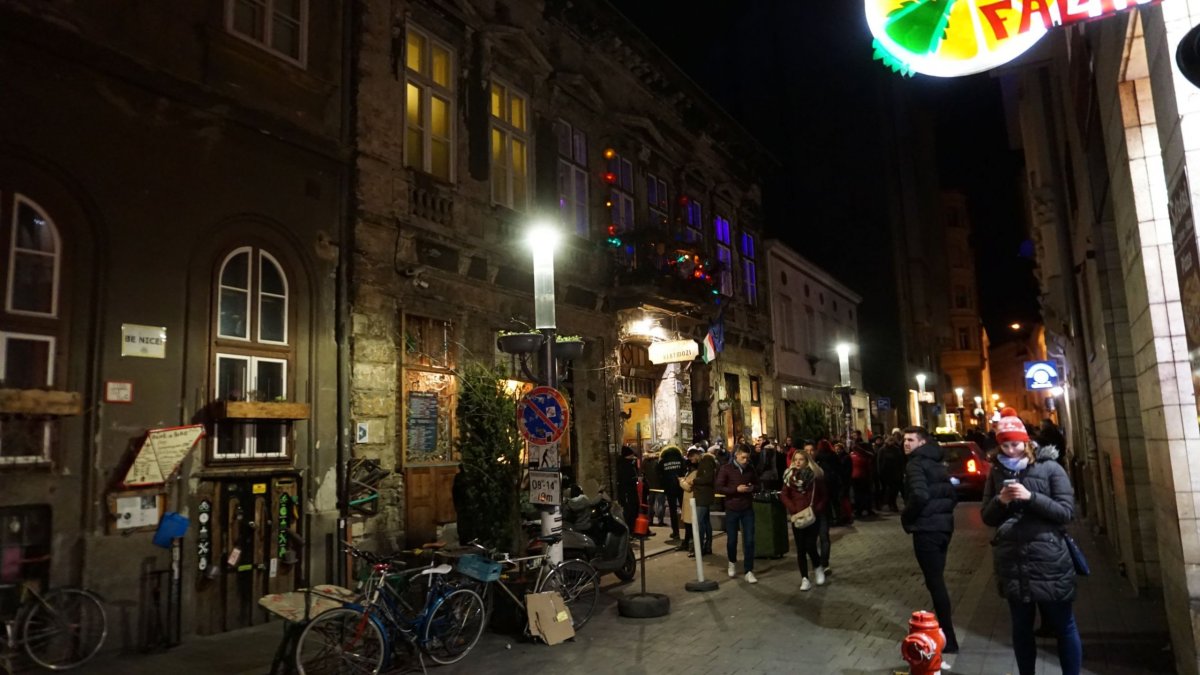 Nakonec jsme se vydali prohlédnout slavné Budapešťské ruin bary. Jde o doslova bary v budovách, které jsou v podstatě ruinami. Jejich největší koncentrace je v Židovské čtvrti. Nejslavnějším a vlastně prvním ruin barem je Szimpla Kert, který se nachází kousek od Velké Synagogy. To, že je nejslavnější bylo vidět na frontě dovnitř, jež se táhla přes celou ulici. V sobotu večer se to dá jistě pochopit. My proto ovšem pochopení neměli a vyrazili jsme hledat ruin bar Kuplung. Když jsme podle map v mobilu přišli k plotu a zbořenému domu, tak jsme si dělali legraci, že to je teda doslova ruin bar. Po troše googlování jsme ovšem zjistili, že budova, kde se nacházel Kuplung, je opravdu zbořená. Nenechte se zmást google recenzemi a neaktuálním infem na netu a v průvodcích. Tohle nás otrávilo natolik, plus s uvědoměním si toho, že brzy ráno musím řídit, jsme se na další ruin bary vykašlali. Trochu mě to zpětně mrzí, ale už nebyla síla. Podle toho, co jsme měli najité by za návštěvu určitě stáli ještě ruin bary Fogas Haz a Doboz.