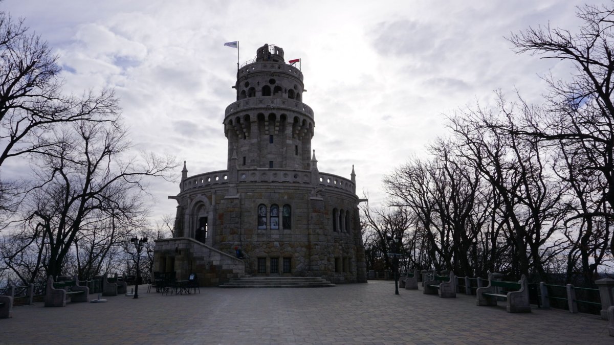 Hned v 8:00 jsme se odubytovali a vyrazili autem směrem k János-Hegy. Jde o kopec, co je asi 10 km za Budapeští, a na kterém se nachází vyhlídka Elizabeth Lookout Tower. Navigace nás dovedla po silnici až na vrchol, ta je ovšem nejspíš jenom pro zaměstnance. Říkali jsme si, že na vrcholek to lehce vyšlapeme, ale musíme někam zaparkovat auto. Už jsme byli trochu zoufalí a tak jsme vjeli do areálu nějakých bytových domů, kde jsme potkali hlídače, kterému jsme se pokoušeli vysvětlit, že potřebujeme někde zaparkovat auto. Bohužel pan hlídač mluvil jenom maďarsky. Ukázal jsem mu na mobilu fotku vyhlídky a naznačil, že tam chceme šlapat. Hned nás pustil dovnitř a nechal nás v nějakém dvoře zadarmo zaparkovat. Chtěl jsem mu při odjezdu darovat pár euro, ale nebyl k nalezení. Výšlap na Janos-Hegy si ovšem dobře rozmyslete. Z našeho startovacího místa (vedle jsme pak našli celkem velké veřejné parkoviště), to bylo 2,5 km, ale sakra strmých 2,5 km. Což moje spolucestující zrovna neocenila a doufám, že tenhle cestopis nečte, protože jsem zrovna na internetu našel lanovku kousek pod vrchol.