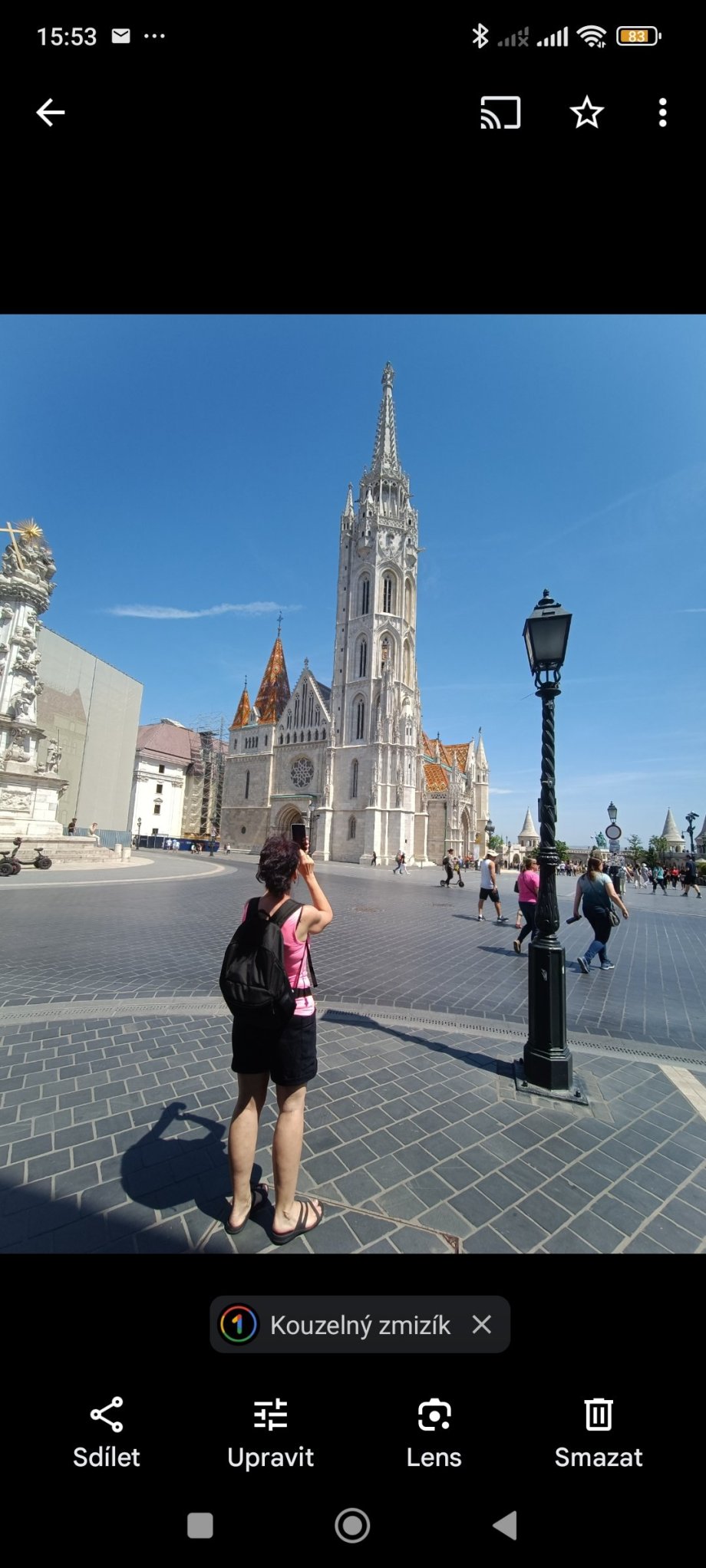 Po příletu jsme se přesunuli na ubytování, kde jsme vybalili nepotřebné věci a vydali se na pozdní oběd. Oblíbili jsme si tuto restauraci (https://maps.app.goo.gl/5viGJWDaQsWjmc3y9) , kde jsem se vždy pochutnala na klasické maďarské kuchyni. Následoval výlet do schodů (dlouhých) k Rybářské baště, kde jsme si pořídili několik fotek a užili si výhledy na město. Okolo Matyášova chrámu jsme zamířili na prohlídku Nemocnice ve skále. Pořízení vstupenek doporučuji on-line za výhodnější cenu (na https://www.sziklakorhaz.eu/hu/informacio) . Prohlídka nám trvala hodinu. Na úvod nám byl promítnutý film o historii nemocnice a pak jsme šli na kilometr dlouhou procházku po expozici, kde atmosféru dotvářelo původní vybavení a nespočet figurín, díky nimž se nám život v nemocnici přiblížil. Nám z důvodu pozdního příletu už bohužel nezbyl čas pro návštěvu sklepního Labyrintu. Ten se nachází mezi Matyášovým chrámem a Nemocnicí ve skále. Je to strašidelná prohlídka, kdy po tmě bloudíte bludištěm. Platba je zde možná jen v hotovosti (možnost platit eury). Po prohlídce nemocnice ve skále jsem se vydali na nákup do supermarketu. Potřebovali jsme pořídit něco na snídani a něco malého na zub na večeři. Pak jsme se vrátili i s nákupem na pokoj, do baťohu vzali plavky, ručník, pantofle a prázdnou lahev na vodu a vyrazili jsme na noční koupání do lázní Rudas. Zde je také nezbytné koupit vstupenku online. Zhruba ve 2 ráno jsme se vrátili na pokoj.