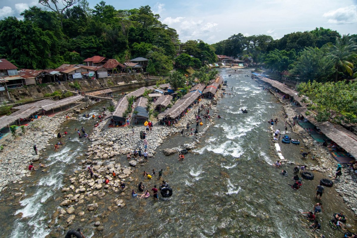 Jedna z věcí, proč jsem si Bukit Lawang tak oblíbil, je mimo jiné to, jakým životem si žije. Vesnice je sice oblíbené turistické místo (které já moc nevyhledávám), ale jinak, než by se mohlo zdát. Bělochů je tu celkem málo (alespoň mimo sezónu) a většina turistů pochází z indonésie. Především o víkendu se tu sejde muslimská komunita a tráví zde celý den u řeky, koupáním, piknikovými hody, či pouze válením se u vody. Je to opravdu pěkný pohled!