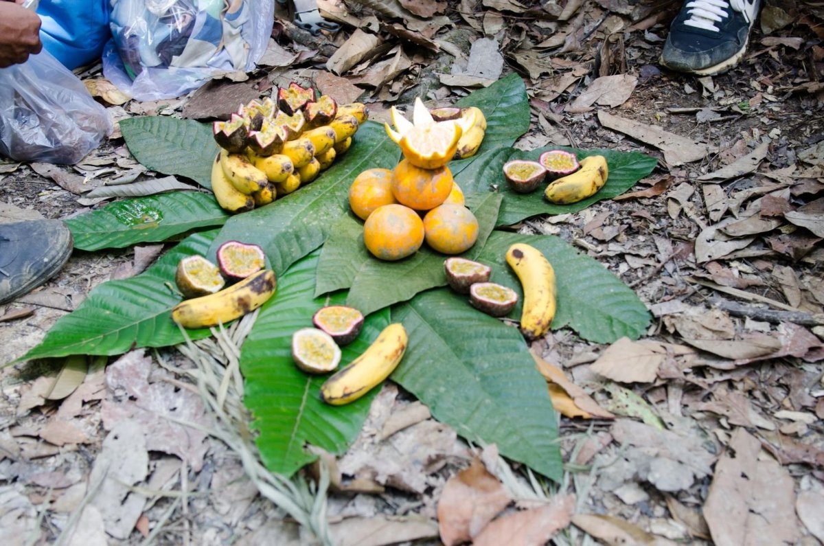 První 3 hodiny jsme neměli moc štěstí a nenarazili jsme na žádné větší zvíře, pokud teda nepočítáte gigantický mravence nebo pijavice, který se nechtějí za žádnou cenu pustit. Naštěstí přišla chvíle odpočinku a svačiny, která nám sice žádného orangutana nepřinesla, ale dodala sílu na další túru. Ke svačině jsme měli různé druhy ovoce jako jsou banán, ananas, mandarinka, dragon fruit nebo marakuju.