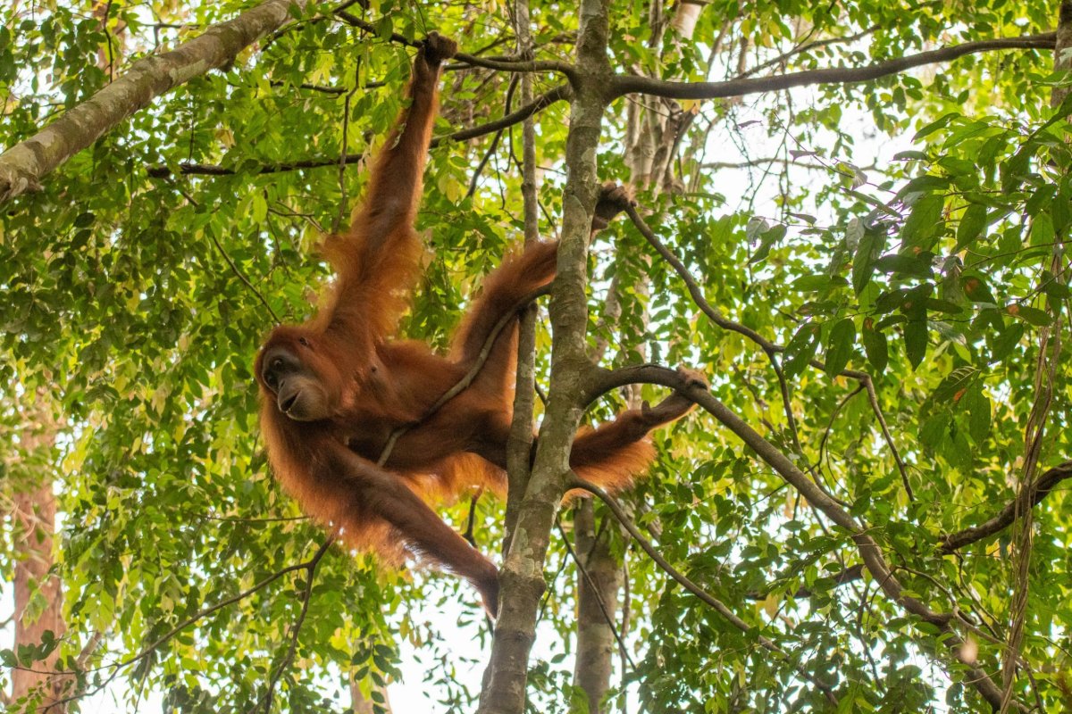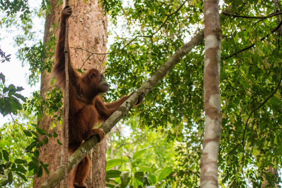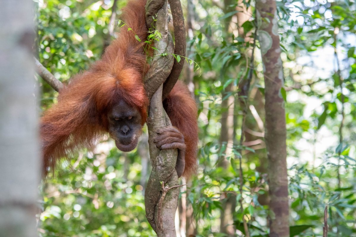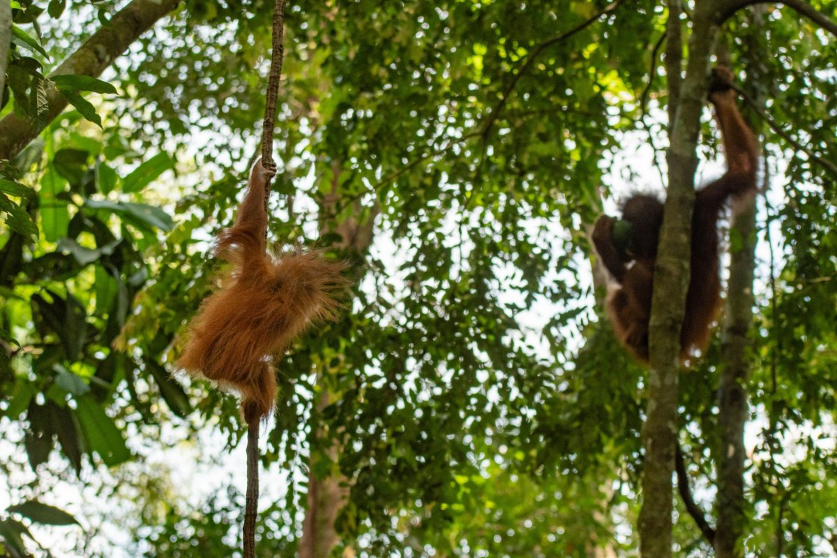 Konečně se dostávám k tomu hlavnímu, proč jsme vyrazili do této vesnice na sever Sumatry. Krom toho všeho zmíněného je to jedno z mála míst, odkud se dají pozorovat Orangutani sumaterští v jejich přirozeném prostředí. Indonésky znamená orang člověk a utan les. Orangutan je tedy výraz pro pána lesa. Bohužel jsou kriticky ohrožení a to jak z důvodu ztráty přirozeného prostředí, tak kvůli lovu. Odhaduje se, že v tomto lese jich žije okolo 7 tisíc a je to jediné místo na světě, kde se vyskytují.