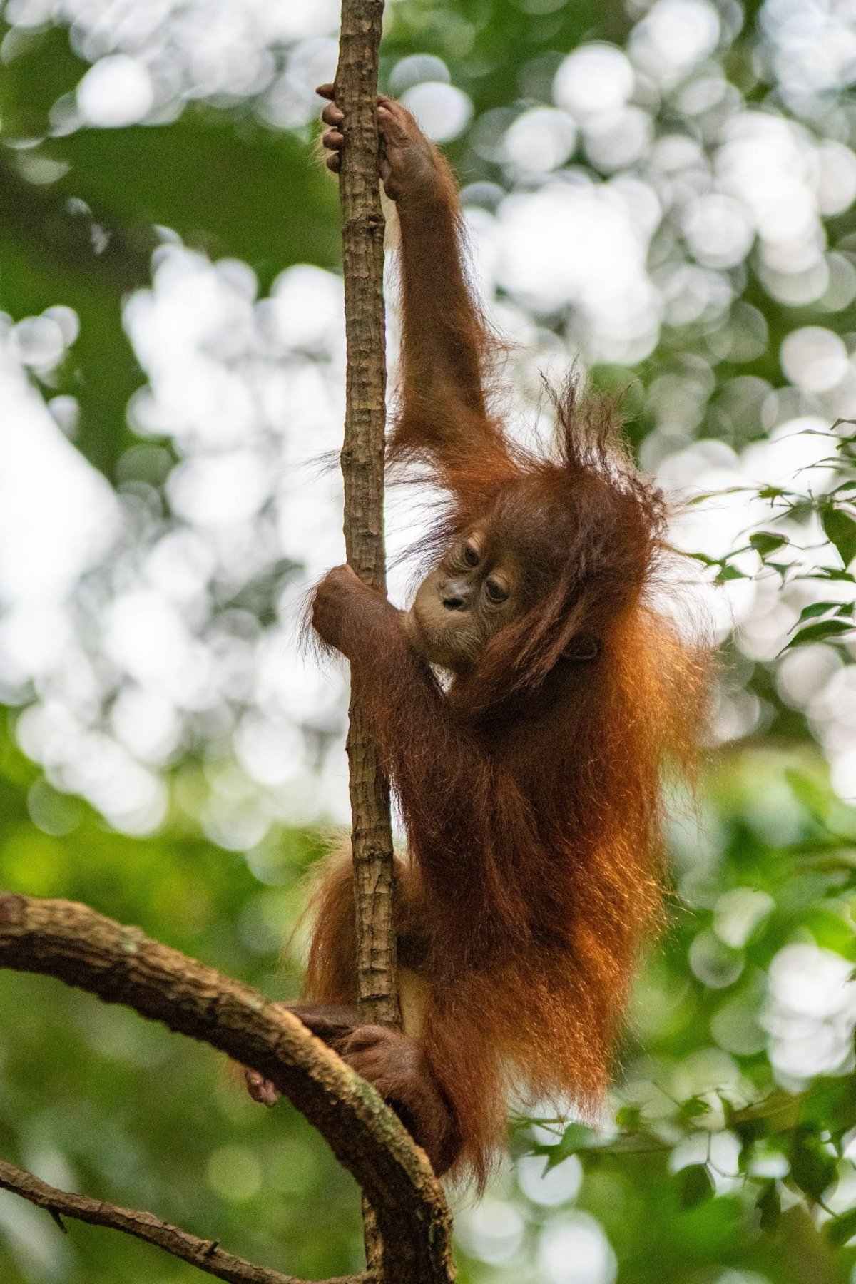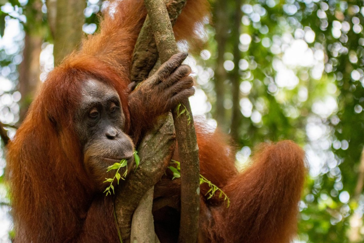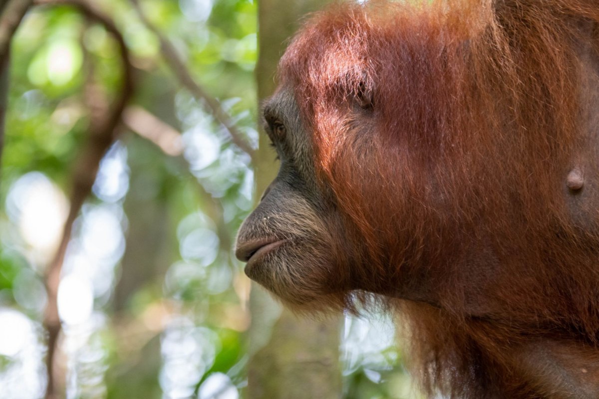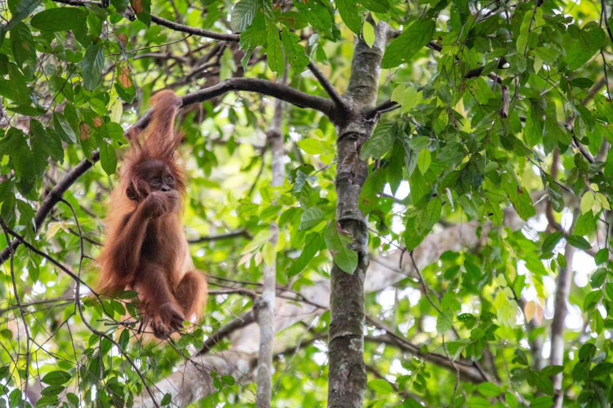 Konečně se dostávám k tomu hlavnímu, proč jsme vyrazili do této vesnice na sever Sumatry. Krom toho všeho zmíněného je to jedno z mála míst, odkud se dají pozorovat Orangutani sumaterští v jejich přirozeném prostředí. Indonésky znamená orang člověk a utan les. Orangutan je tedy výraz pro pána lesa. Bohužel jsou kriticky ohrožení a to jak z důvodu ztráty přirozeného prostředí, tak kvůli lovu. Odhaduje se, že v tomto lese jich žije okolo 7 tisíc a je to jediné místo na světě, kde se vyskytují.