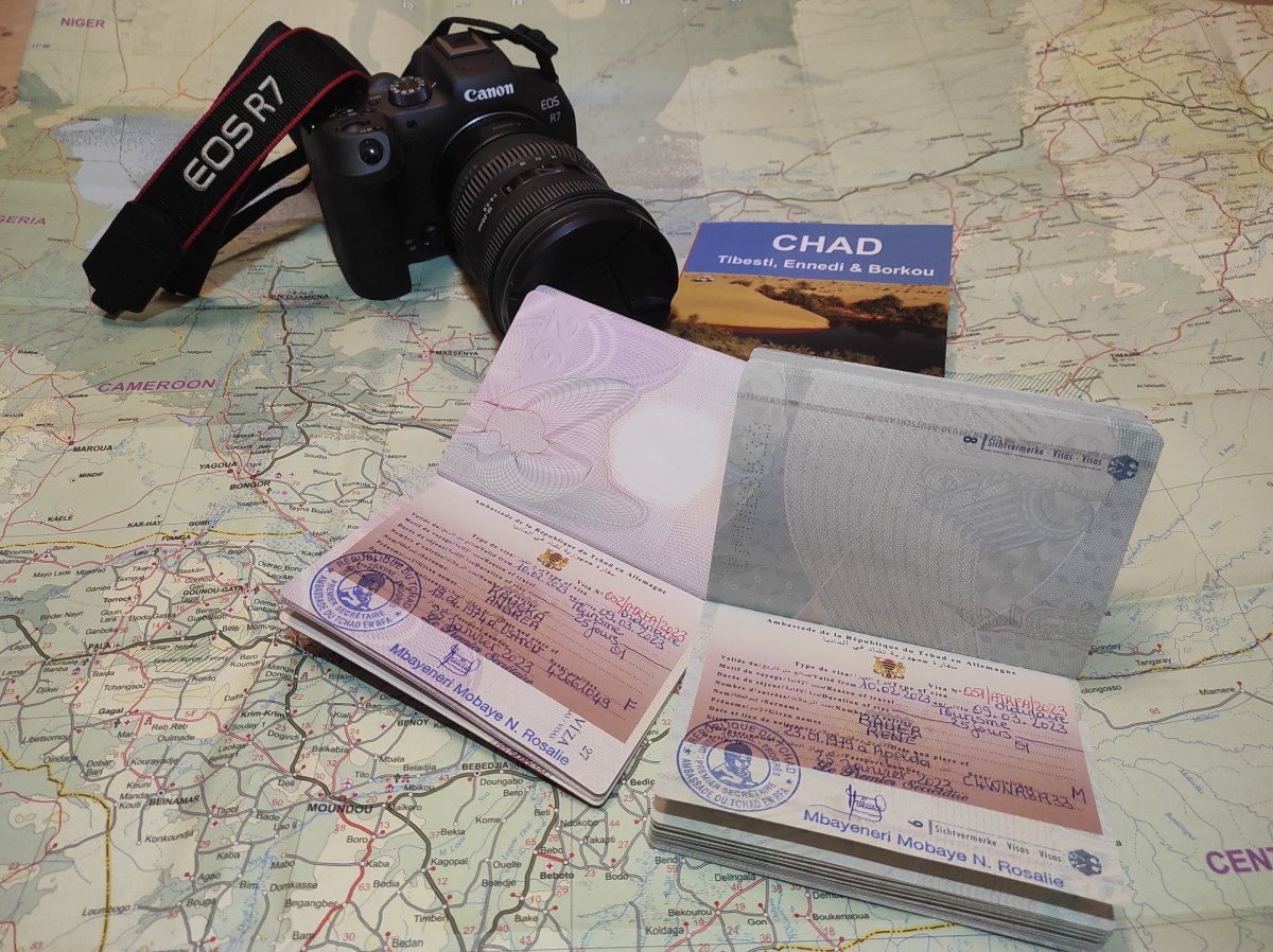 Oh víza, to je asi jako v každé podobné zemi... k žádosti je třeba zvací dopis od místní agentury, rezervace ubytování, cestovní pojištění a kopie pasu a hotovost 100eur na pas. Odeslali jsme kurýrem, abychom později zjistili, že Deutsche Post DHL zaměstnává trotly co asi neumí číst a nepřečtou obrovský nápis "Ambassade de la république du Tchad". Zásilku nedoručil a poslal zpět. No na to že jsme měli jen 3 týdny do odletu, tak to nepotěšilo. Nakonec pár telefonátů a diskuze s DHL a pas dorazil do správných rukou. Za týden bylo hotovo, ale zase ambasáda ztratila zpáteční obálku :-D Jejda, už jsem si myslela, že Čadiané fungují lépe než úředníci z okolních zemí, ale nezklamali :-) Víza v pase, batožina zabalená tak už jen úbytko a zajistit odvoz z letiště.
