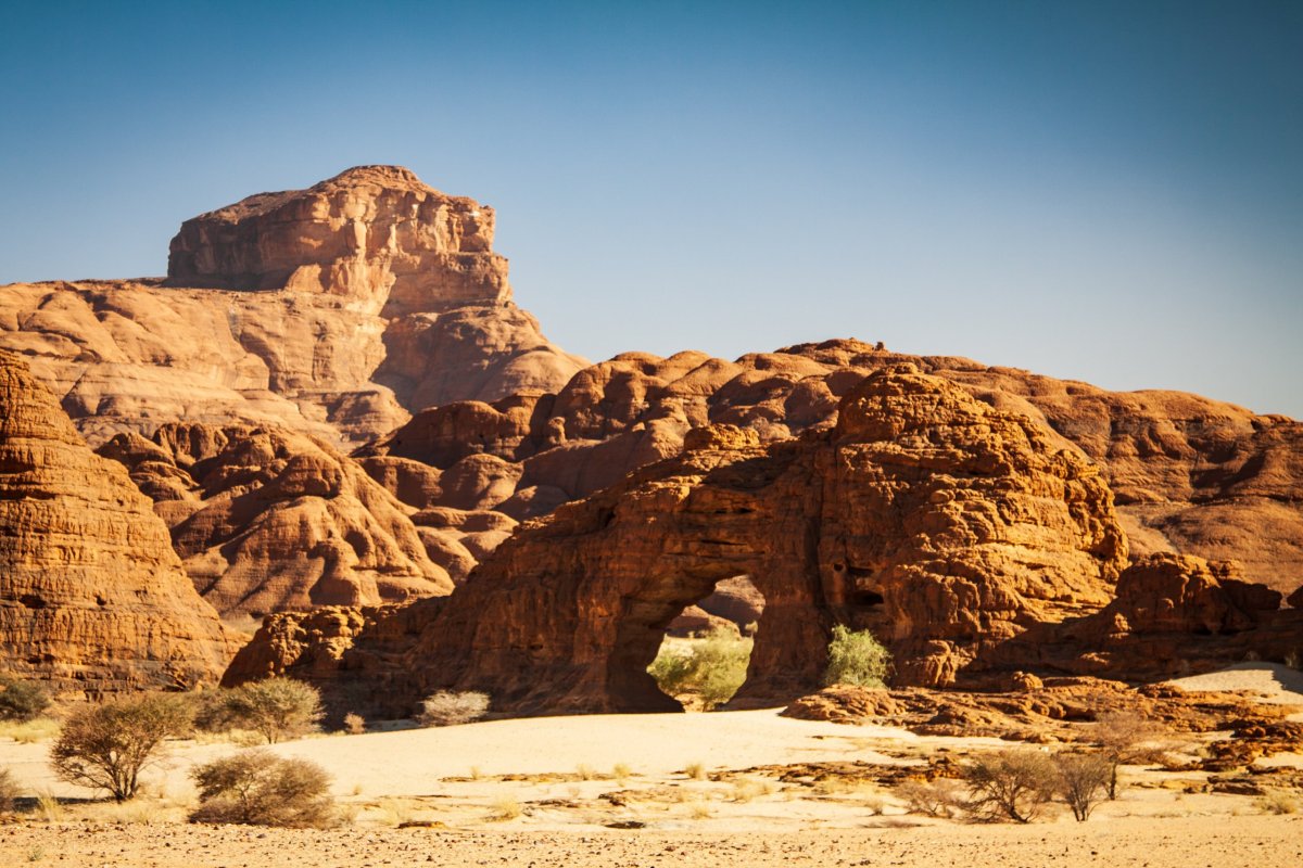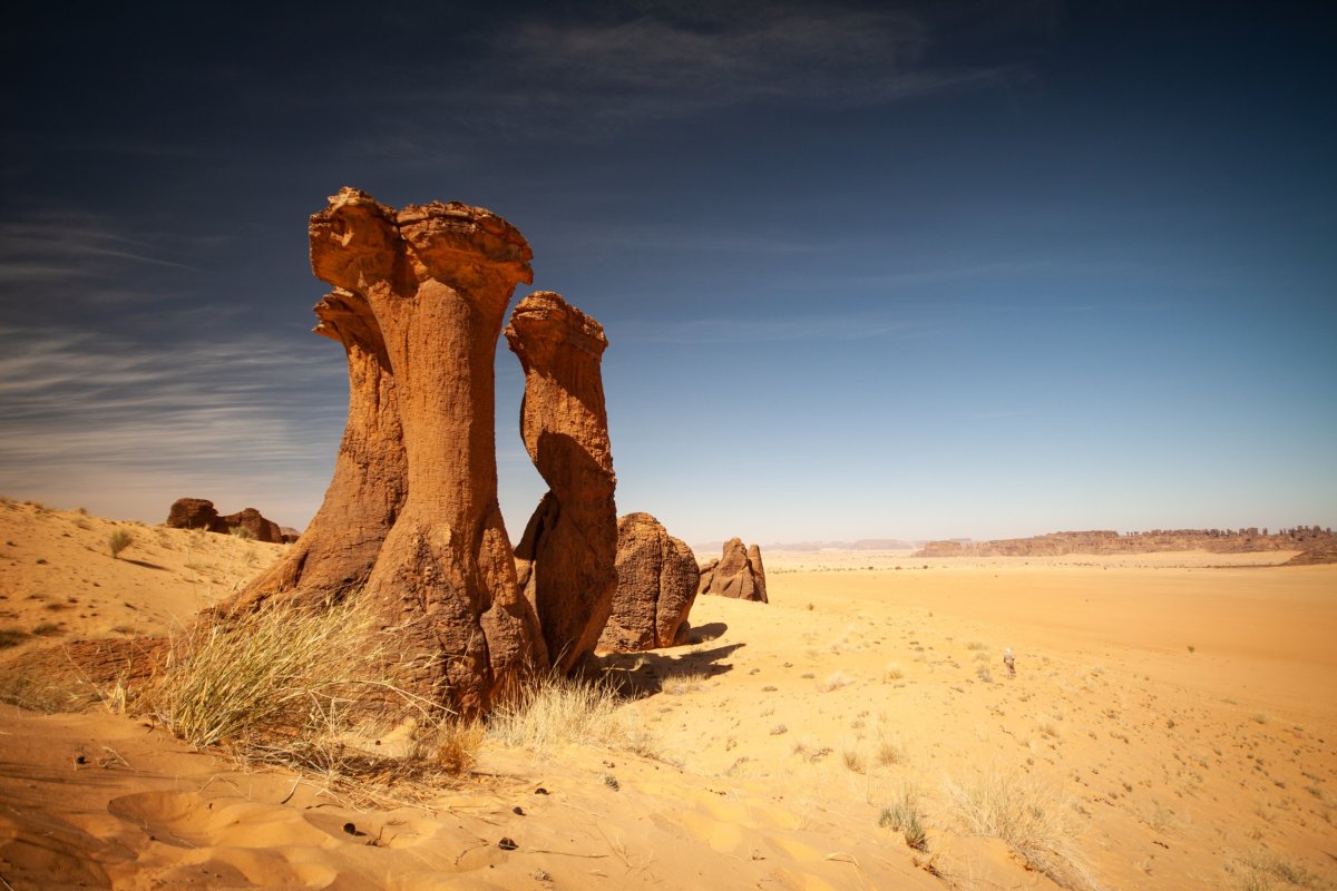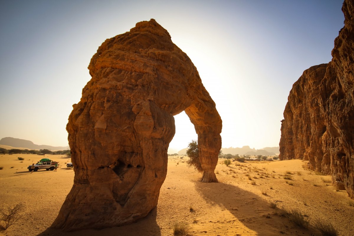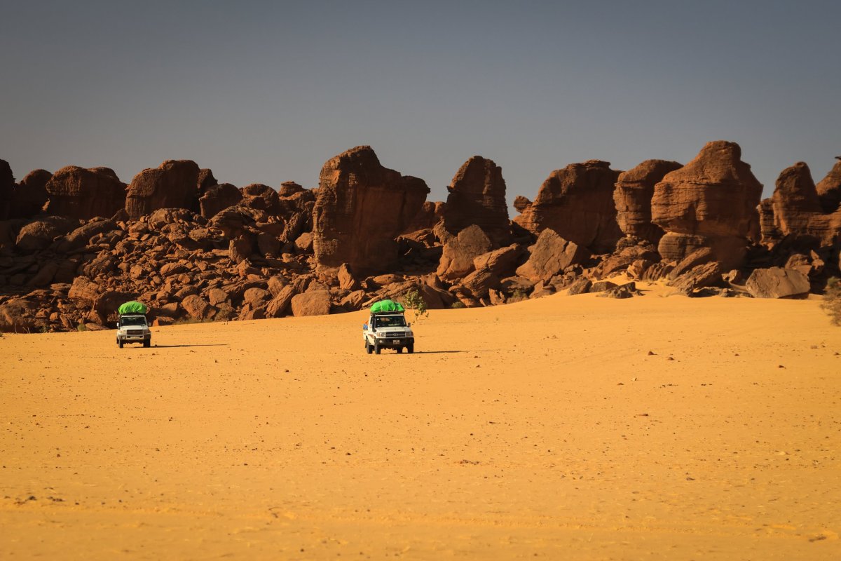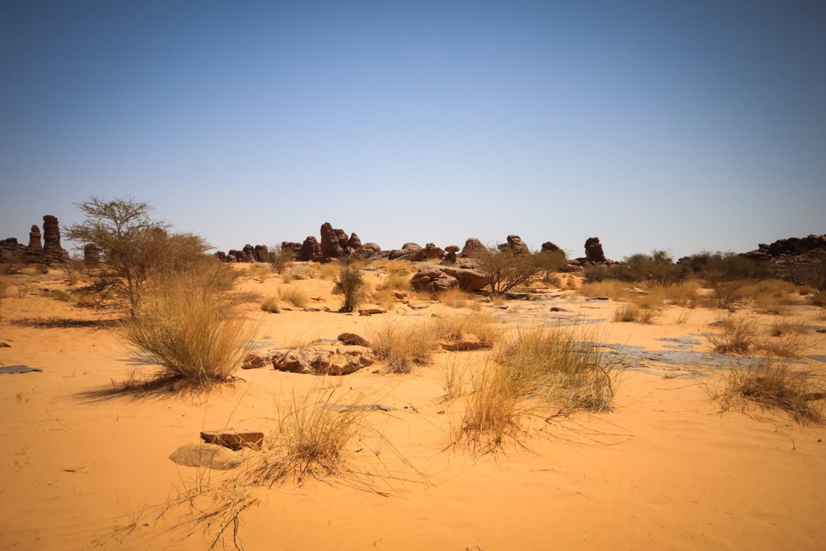 Projíždíme Biltine, Arada a Kalait a před námi se rozprostírá nedozírný oceán oranžového písku potřísněn tu a tam nějakou akácií či jinou trnitou buší, z jehož hlubin vystupují pískovcoví obři různých tvarů a velikostí. Vítá nás Ennedi plateau.