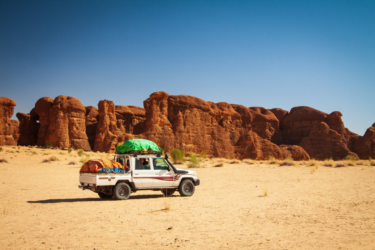 Do Čadu se nejezdí jen tak se courat po zemi, ono to není až tak možné, a když už tak jen z N´Djamena dostupných lokalit. Má-li člověk dostatek trpělivosti a k tomu výbornou francoužštinu, může se vydat na vlastní triko si zajistit potřebná povolení a registraci, zapotí se u toho :-). My protože jsme tam jeli poprvé a tam kam máme namířeno se dá jet pouze s místními průvodci v pronajatých autech s místními řidiči, volíme jednodušší cestu a to nechat tu úmornou byrokracii na místní agentuře.