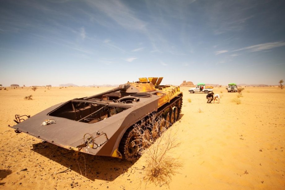 Čad si prošel mnoha náročnými obdobími, několikaletými válkami ať už je to dlouholetá občanská válka z konce 60tých do počátku 80tých let nebo libyjsko-čadské od druhé poloviny 70tých do druhé poloviny 80tých let. Nebo občanská válka z let 21stol a další a další a další. Po těžkých bojích v nehostinných podmínkách pouště tu zbyla obrovská pohřebiště vojenské techniky. Osmirglovaná pískem, vyleštěná do lesku a stále ve velmi dobrém stavu, zde tiše v poušti odpočívá jako svědek bojů o moc a území.
