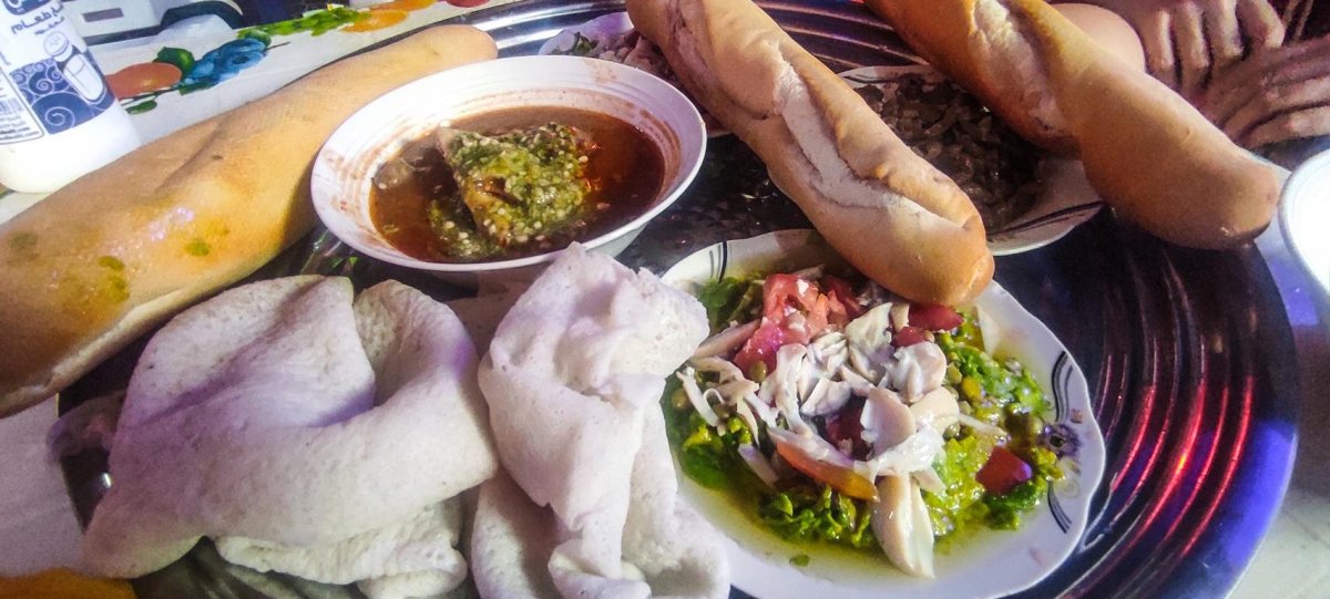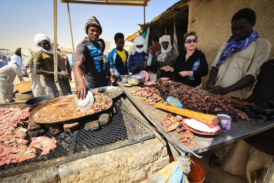 Co nenakoupíte v hlavním nebo větších městech, na to zapomeňte. Kromě coca coly a těhle soft drinků, kterých mají všude více jak vody. V poušti mají zásoby tak zoufale omezené, že byste se těžko najedli a tak čím dál jste od civilizace, tím více je strava monotónní a ještě ke všemu vegetariánská. Většinou poslední čerstvé maso jíte někde na začátku Ennedi a další dostanete až ve Faya na cestě zpět do sahelu.
