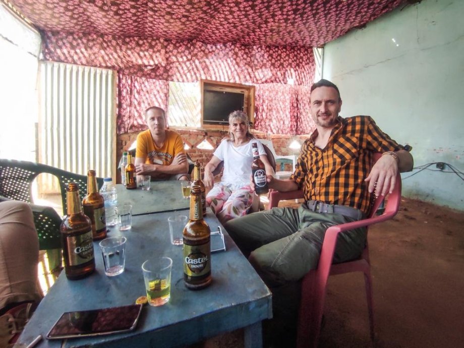 Welcome to Chad! I v noci je venku vedro jako v troubě. Přiletěli jsme z minus 10 do plus 40, masakr. Úbytko super, čisté, vybavené a v centru "restauračního" dění. Dva dny trávíme v hlavním městě, musí se vyřídit povolení k cestování a registrace. Bereme to na pohodu, je nechutné vedro, spousty toho je zavřeného, a navíc jsme utahaní s předcestovního maratonu a letu, ale chlazené pivko a místní pub bodne.