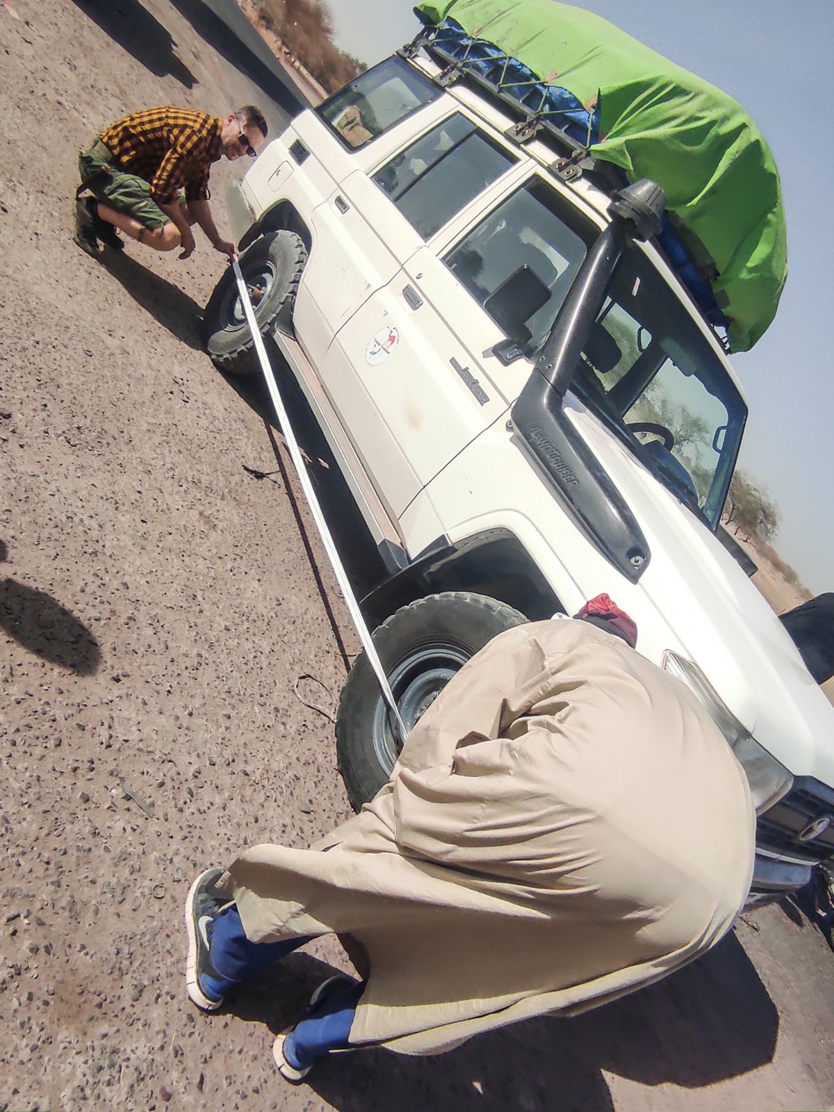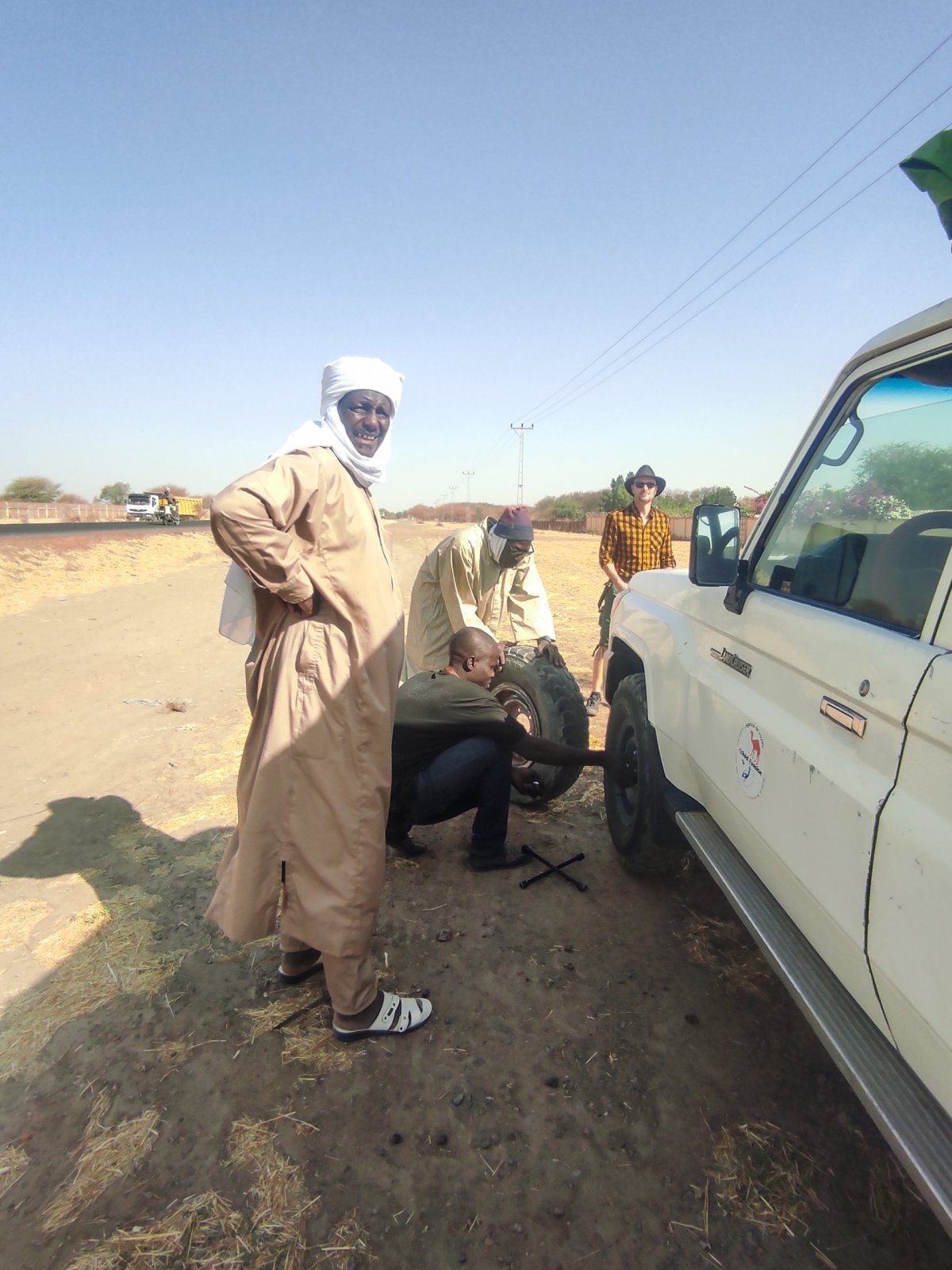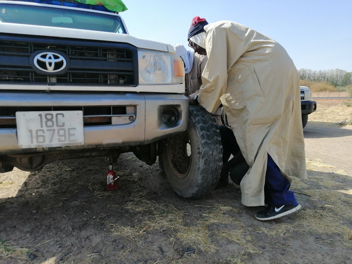 Vše je připraveno a v pondělí ráno vyrážíme na okruh prvně směrem na východ, pak na sever a nakonec zpět do hlavního města. Jsme zvědaví co nás čeká... Země je obrovská, zůstáváme v sahelském pásmu a na Sahaře. Po hlavní tepně, nepředstavujte si hladkou asfaltku, ani tankodrom D1. Hlavní tepna jsou přerušované fáze asfaltu střídající se s vymetenými lochnami velikosti zahradního jezírka. Kus za Djamenou máme první problém s autem. Čekáme na výměnu. No jo no stane se. T.I.A. jak říkáme my, co Afriku znají a mají respekt, že v Africe se o věci starají po africku (ne každý to chápe, ale jednu radu vám dám, stát se může cokoliv i na autě rok starém, kor v Africe na extrémních cestách v extrémních podmínkách, když se z toho hned nepo.... ušetří vám to nervy a vaše dovča bude na pohodu. K dobrodružství v Africe to patří :-) )