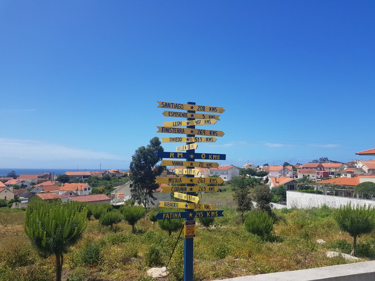Hostel Davidenda (jsem si ho přejmenoval) se probouzel kolem sedmé ranní. Venku pršelo a tak se všech asi 20 lidí z 4-5 pokojů postupně shromažďovalo v hale s recepcí. Před osmou pršet přestává a hlouček se rozpadá na různé odchozí skupinky. 'Jdu s nima, musim pro kafe, nic tu není.' Hned za rohem je minimirket v portugalském podání, tady s bárkem a kávovarem. Vida, zastávka na snídani tedy proběhla do 2 minut od startu dnešní etapy. Zdržím se, ale brzy partičky docházím/předcházím. Cesta se vine asi 8 km podél pobřeží. Naposledy, pak by se měla stáčet podél řeky do vnitrozemí, co si tak z mapy pamatuju. Dorážím do Caminho, kde opakuji včerejší chybu, tentokrát s horšími následky. Na začátku města si jen tak vykračuju a lelkuju po okolí. Když tu jsem na nějaké křižovatce a nevím kam dál. Rozhlížím se kolem sebe a v dálce na sloupu vidím žlutou šipku. Tak jdu za ní, následují další a další. Normálně tedy pokračuji v cestě. Po nějaké době se na obzoru ukáže oceán. No co to je??
