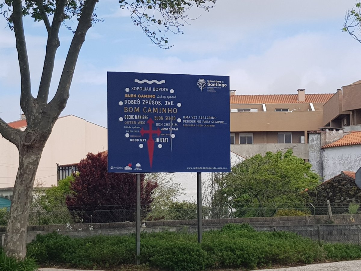 Po 12 km zastavuju pro razítko a na cígo u jednoho z Alberků. Další kilometry jsou vesničkami. Asi slejzám z hlavní trasy, páč dlouho jdu sám a bez značek. Pak objevuju rozcestník s šipkou 181 km SdC! (To je motivující. Poslední jsem viděl včera večer a bylo tam 216 km. Později se ukáže, že si to píšou nejspíš jak chtěj. Druhý den vidím 219,9 km :D). Zastavuji ve vesnici Fão v pravé poledne. Dávám si voraz, nohy nahoru a perfektní poutnické menu za 8,5eur (předkrm, polévka, maso s hranolkama a rejží(?), malé pivko a na závěr prej best coffee on Portugal).