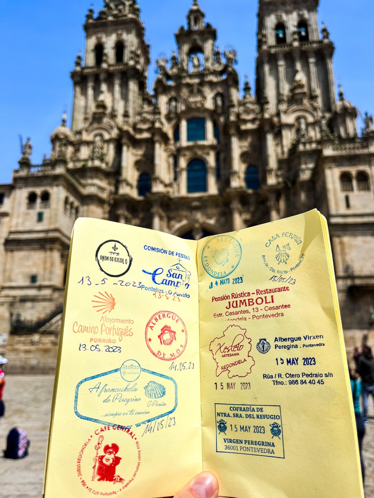 Každý správný poutník (pilgrim, pelegrino) se potřebuje nějakým způsobem po cestě identifikovat. K tomu slouží Credencial, což je malá knížečka, kam se dostávají po cestě razítka. V Santiagu se musí poutník touto knížečkou prokázat, aby měl nárok na dokument zvaný Compostela. Samozřejmě je to po dokončení cesty krásný upomínkový předmět, kde se zpětně můžete podívat v jaké restauraci jste jedli nebo na jakém ubytováním jste přespali. Po cestě se tímto průkazem prokazujete také na Albergue (tyto ubytovny jsou výhradně pro poutníky). Průkaz tedy zajišťuje váš nárok se ubytovat. Po cestě musíte mít minimálně ve vašem Credencialu 2 razítka denně. Razítko dostanete na ubytování, v kostele, v restauraci nebo v kavárně. Já jsem dokonce svoje razítko dostala i od španělské policie. Credencial lze koupit už předem v ČR, jako jsem to udělala já - https://www.pod7kilo.cz/p/creden...ltreia-cz/ - jelikož jsem nevěděla, jak to ještě vše funguje, tak jsem se nechtěla v Portu před cestou zbytečně stresovat. Jinak tedy přímo v Portu ho seženete za 2 EUR v Cathedral Sé.