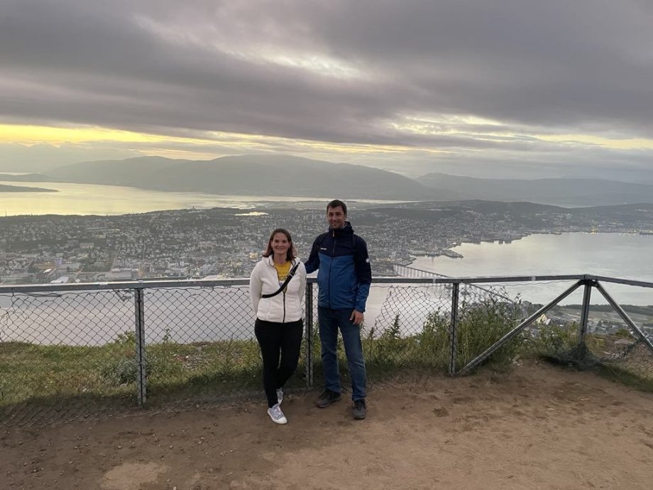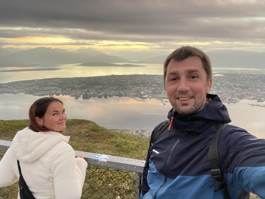 Čeká nás poslední trek. Hora Segla. Těsně předtím si přečteme, že nahoru se sice dá vystoupat, ale mnohem lepší je jít trek Hesten, odkud je krásný výhled na tu impozantní zkosenou horu. Poté už nás čeká cesta domů, 84 km jedeme 2 a půl hodiny. Čeká nás tam i převoz trajektem. V Tromsu omyjeme a vrátíme auto, jdeme se ubytovat na hotel, koupíme si toust do ruky a mastíme na lanovku (jezdí do půlnoci). Je sice trochu dražší, ale už první den, jsme si řekli, že to na závěr dáme. Výhledy na město Tromso jsou skvělé. Zdržíme se tam tak dlouho, abychom městečko viděli i za tmy. Já si při čekání vychutnám horkou čokoládu s toustem, nebudeme si nalhávat, že to byla levné svačinka, ale žijeme jen jednou, ne? :)