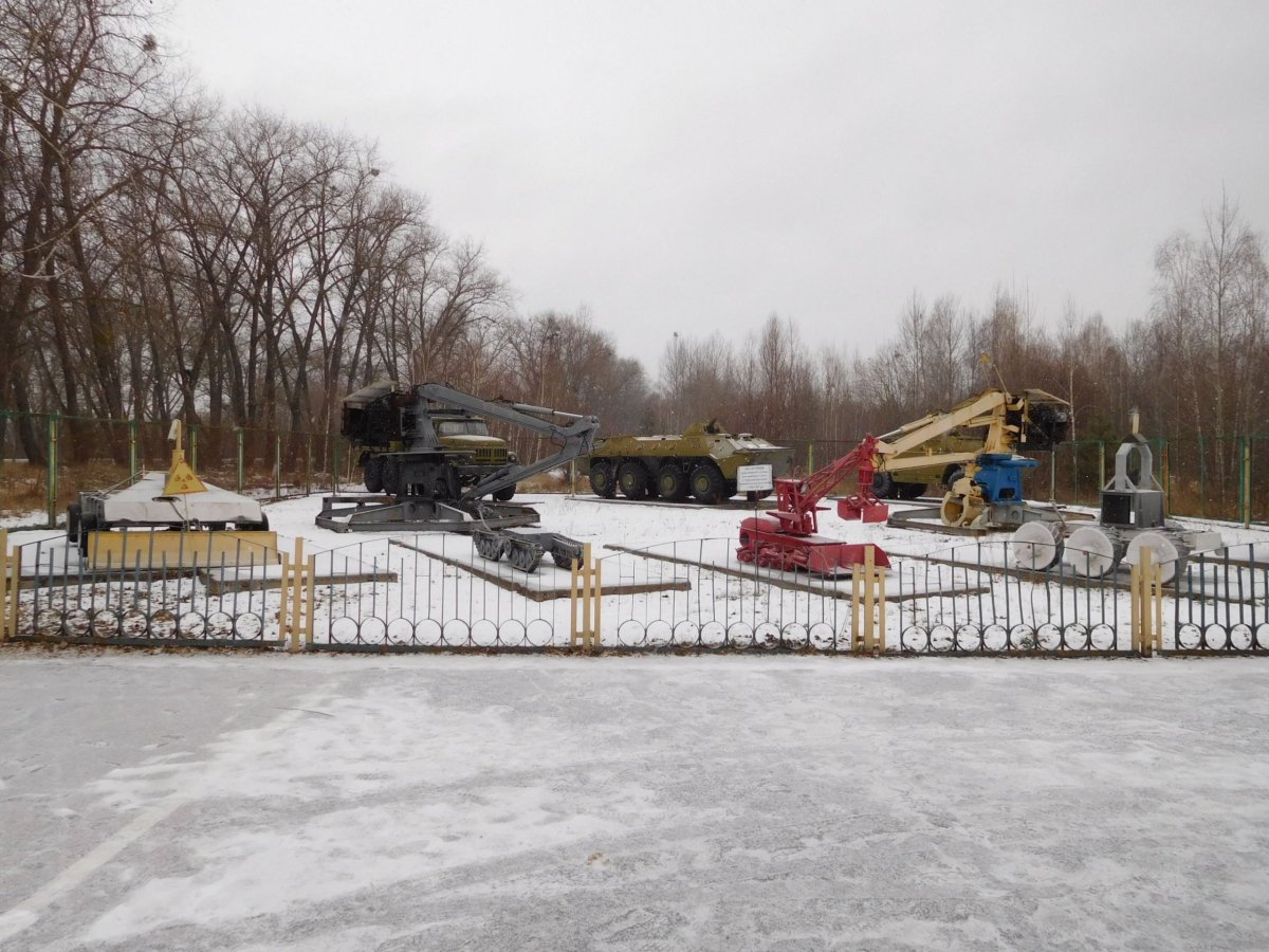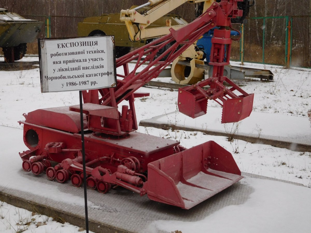 Po povinných fotkách jedeme k vystaveným strojům, kterými odstraňovali trosky po havárii.