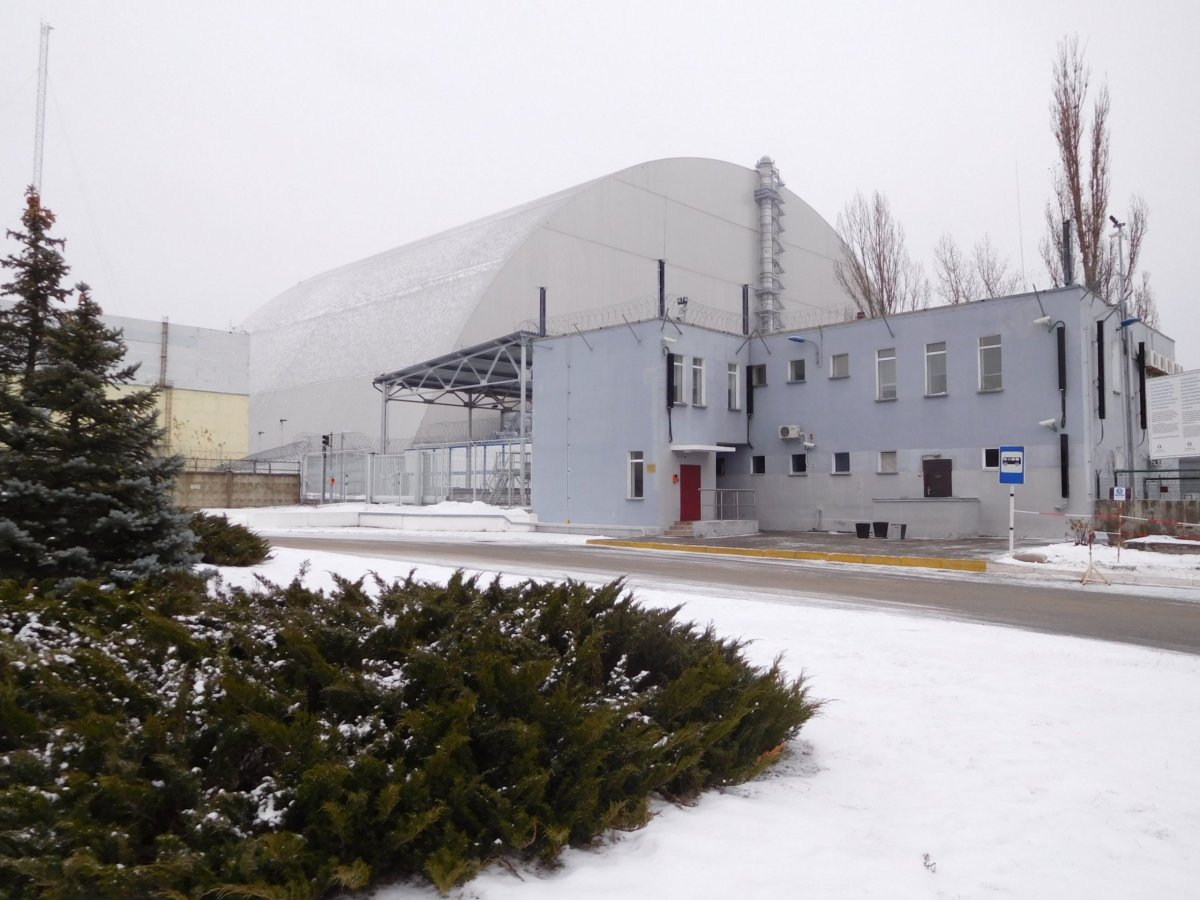 Pak projíždíme kolem rozestavěného 5. bloku JE, ze 75% hotový, nikdy nedostavěný. A v dálce je vidět sarkofág nad 4. blokem.
