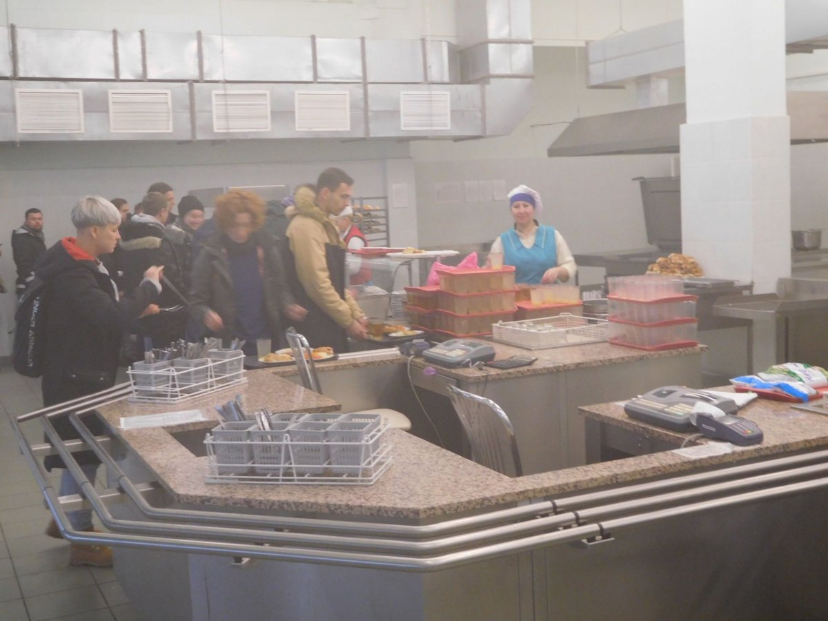 Poledne - čas připomenout si doby dávno minulé v nefalšované závodní jídelně. Samozřejmě opět zákaz focení. Jsem já to ale rebel.