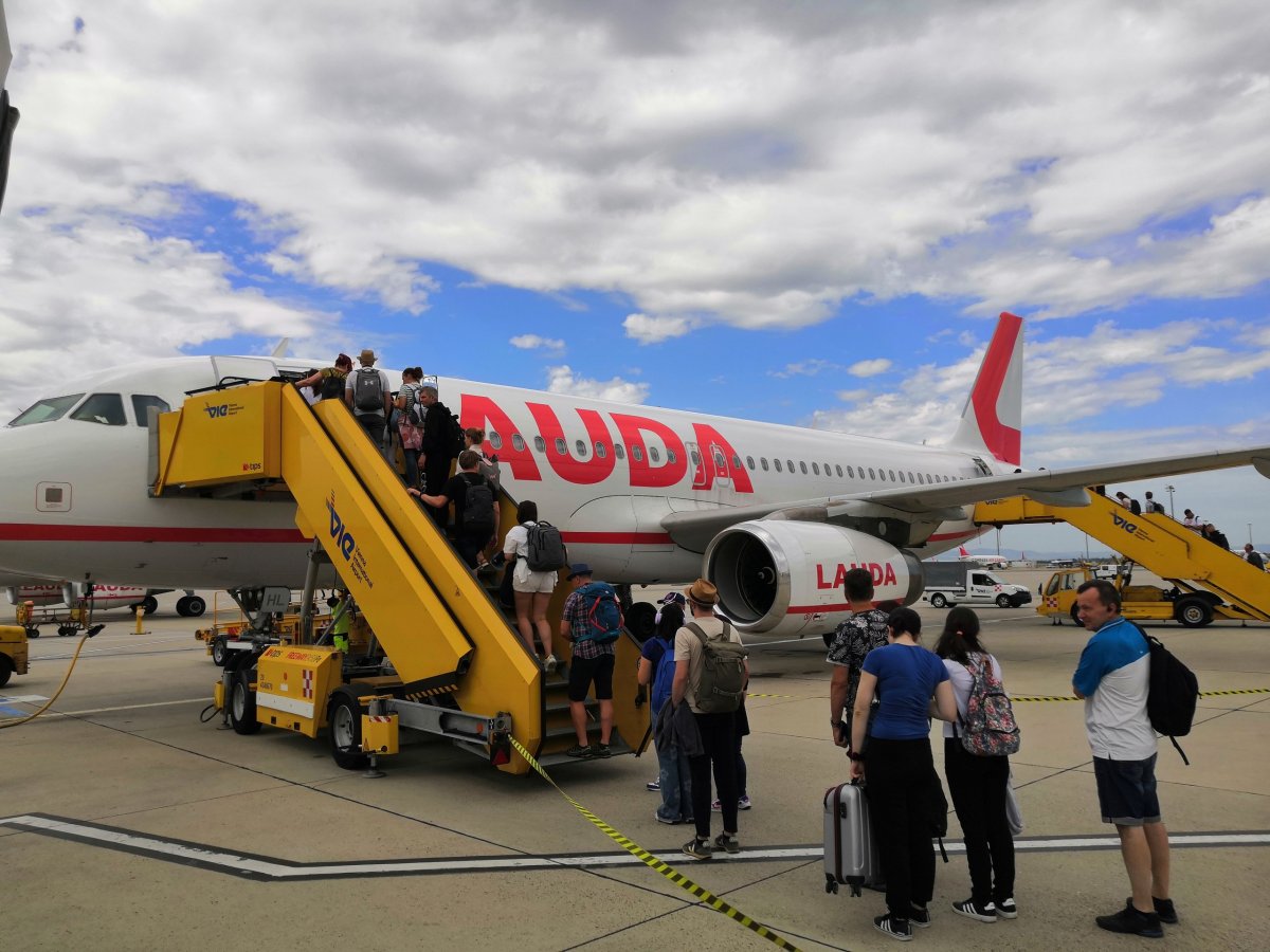Letadlo (Airbus A320-232) společnosti Lauda, s plánovaným startem v 10:10, mělo více jak hodinu zpoždění kvůli technické závadě a tak jsme v Bergamu přistávali až okolo 13. hodiny. Ranní čekání ve Vídni jsme si alespoň ukrátili ve Vienna Lounge a v Bergamu jsme díky pozdnějšímu příletu nemuseli čekat tak dlouho na navazující let. Do Lurd (konkrétně na letiště Tarbes-Lourdes-Pyrénées) už let (Boeingem 737-800) proběhl jen s menším zpožděním a nás tak po šesté hodině večerní dovezl autobus z letiště do centra města. Do Lurd jezdí z letiště autobusy dva, TL a TLP. Autobus TL je běžný linkový a cena jízdenky je 1 euro, autobus TLP je jakýsi letištní expres a za jízdenku chtějí 3 eura. Po celodenním cestování jsme už neměli energii si ještě město večer procházet a tak jsme po lehkém nákupu potravin zamířili rovnou na ubytování.