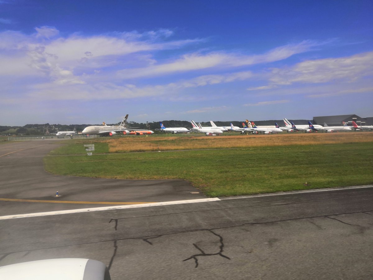 Poslední den výletu nás zprvu čekal hlavně přesun na letiště a odlet do Bergama. Před desátou ranní jsme se tak nasoukali do plného autobusu, mířícího na letiště a po důkladné kontrole příručních zavazadel (kdy babičce slečna u rámu dokázala vybalit komplet celý batoh, aby se pak jen usmála a řekla, že je vše v pořádku) jsme vyčkávali na přílet našeho letadla. Zvláštností lurdského letiště je spousta odstavených a vyřazených letadel různých společností podél obou stran dráhy, mezi nimi i typy jako Airbus A340 nebo A380. Spoustě z nich chybí motory nebo další části, ty jsou pak předpokládám používány jako náhradní díly pro ještě sloužící kusy. Nejlépe jsou pozorovatelné při vzletu a přistání zejména na západní straně dráhy.