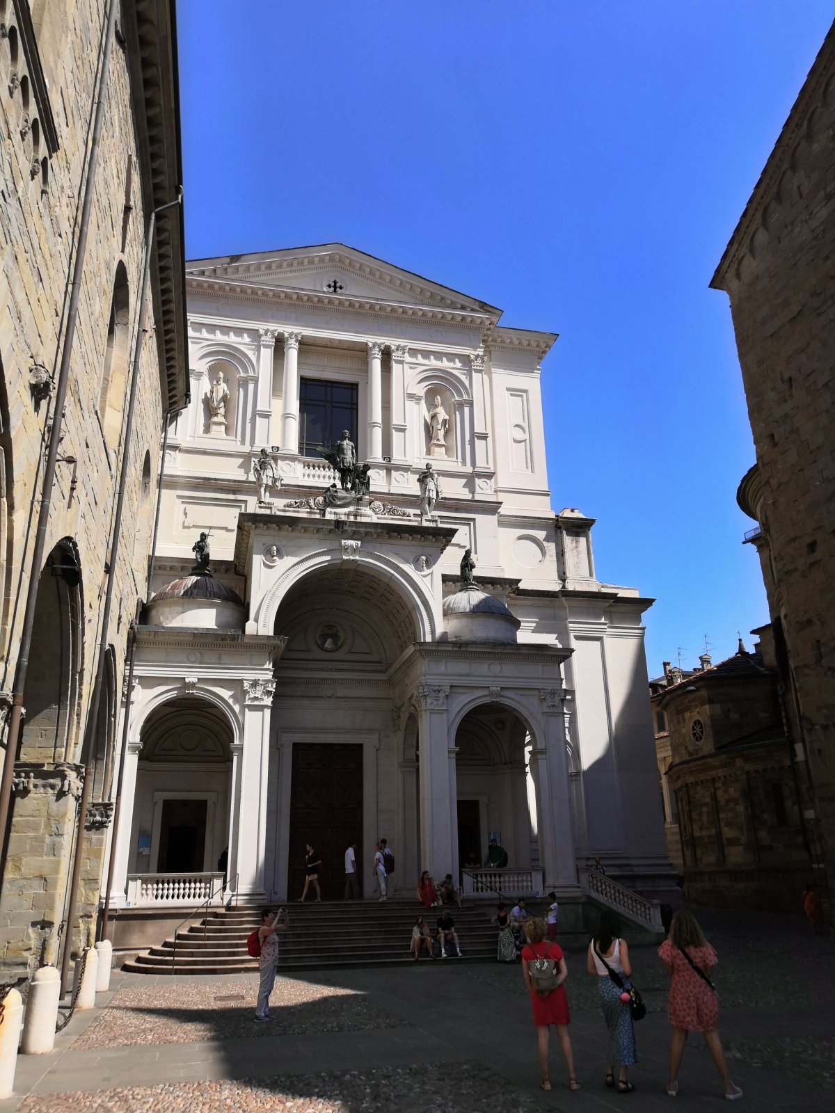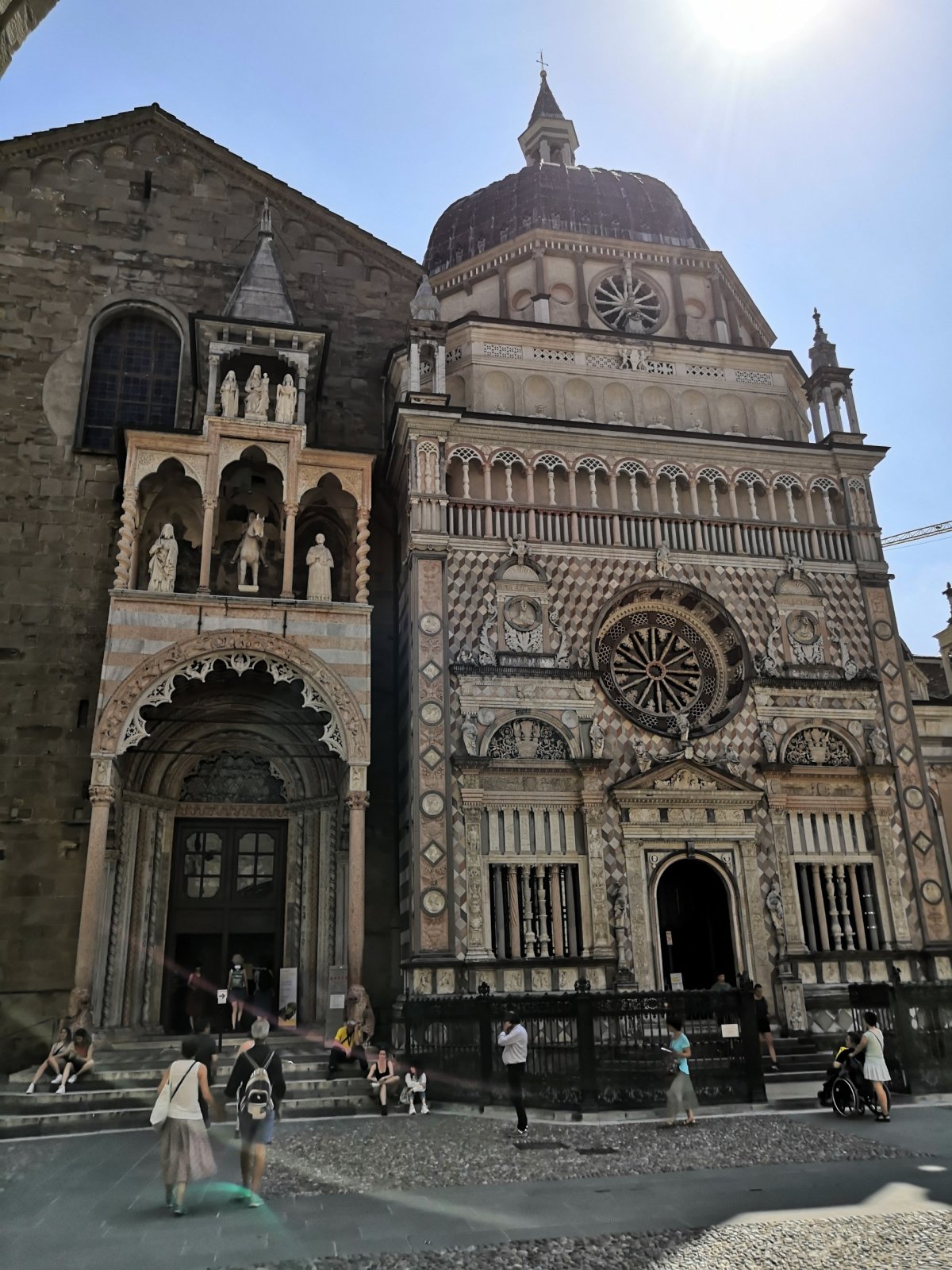 V Bergamu jsme přistáli okolo 14. hodiny a měli jsme tak více jak 6 hodin, než nám letělo letadlo do Brna. Rozhodli jsme se tak využít tento čas k navštívení nedalekého města Bergamo. Autobusem číslo 1 jsme se za 2,60 eur/osobu dostali až do vyvýšené městské části Citta Alta (Horního města), což je takové turistické centrum Bergama. Celé Horní město je obehnáno mohutnými hradbami a kolem nich je pak mnohem větší Citta Bassa (Dolní město). Uvnitř Horního města se nachází spousta zajímavých uliček, domů a také například zdobně postavená Bazilika panny Marie Sněžné (Bazilika Santa Maria Maggiore) nebo z venku trochu skromnější Bergamská katedrála (Duomo di Bergamo). Obě uvnitř honosně zdobené a rozhodně stojí za návštěvu. Na přilehlém náměstí jsme si neodpustili místní výbornou zmrzlinu a vydali se branou San Giacomo směrem k vlakovému nádraží, odkud nám jel autobus zpět na letiště. Po cestě jsme prošli i kolem neoklasicistní brány Porta Nuova, která dříve tvořila vstup do města a odkud je také pěkný výhled zpět na Horní město.