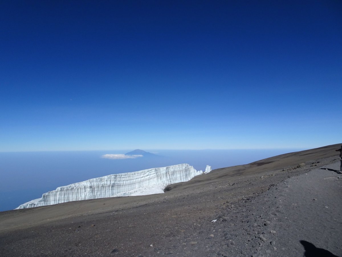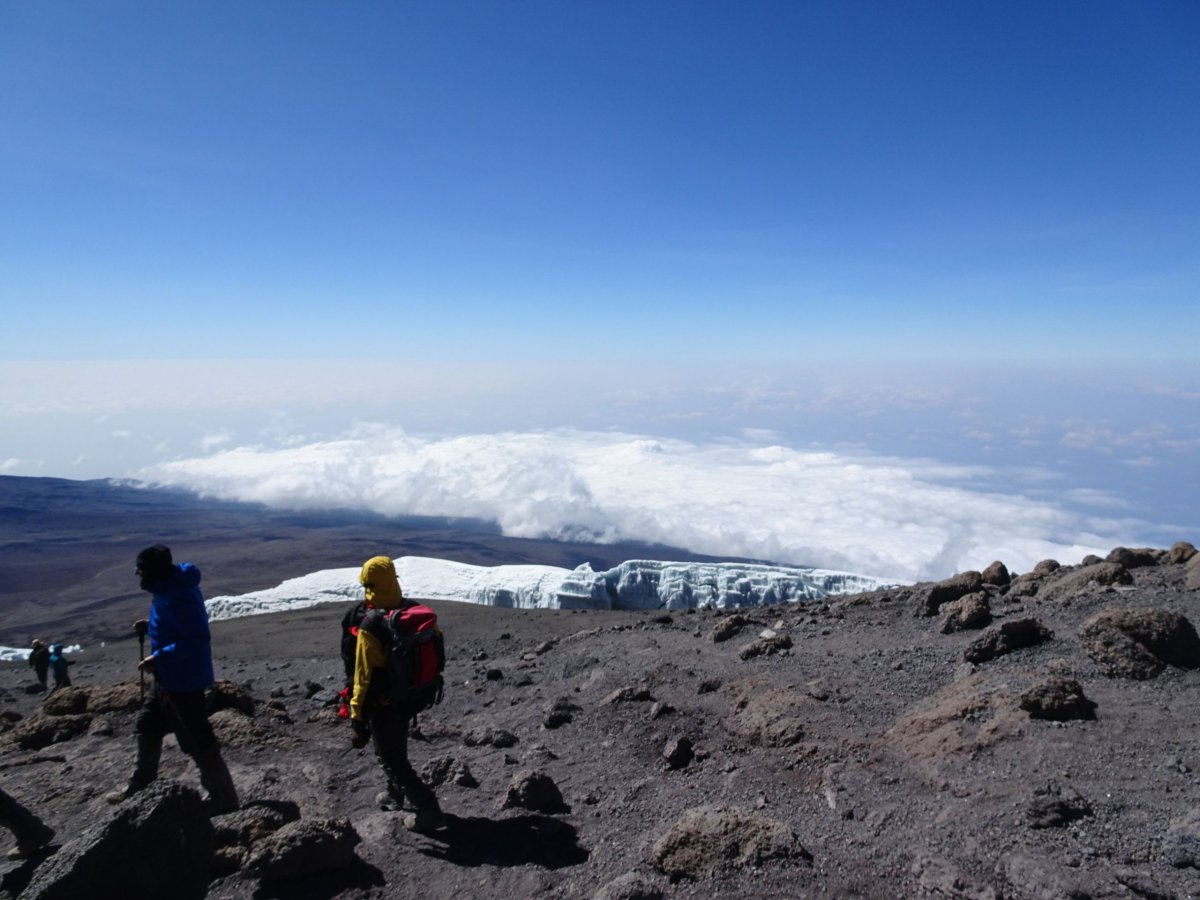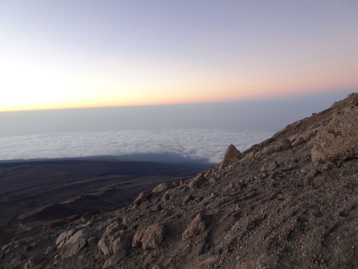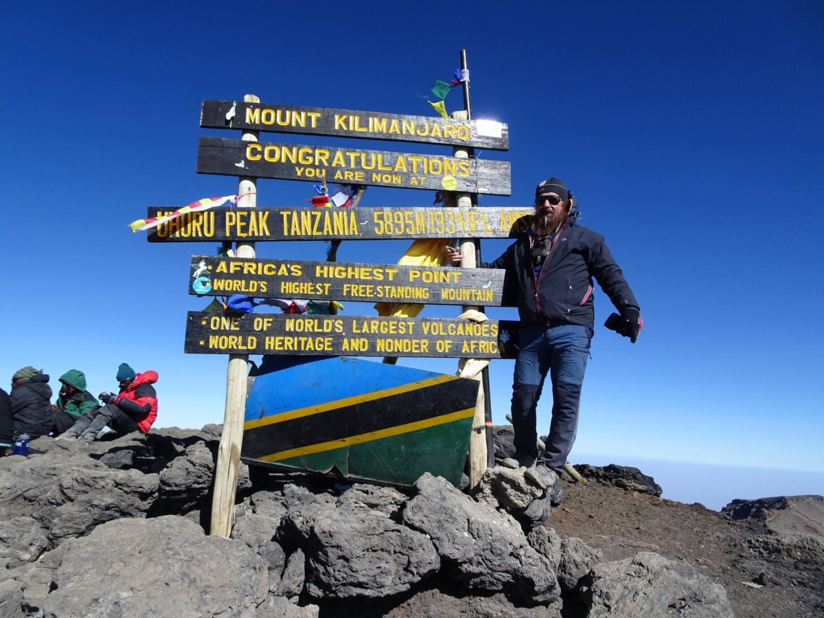 Přesně o půlnoci začala poslední, ta nejnáročnější část cesty k vrcholu Kilimandžára. Foukal poměrně svěží vítr, teplota - 12 stupňů Celsia, čelovka rozsvícena a jde se na věc. Čeká nás strmý svah se sypkým povrchem, kde dva kroky nahoru tvoří v součtu jeden, jelikož v sypkém povrchu dochází ke skluzu. V 5000m již je znát vliv řídkého vzduchu a plíce zahájí dvojnásobnou frekvenci dýchání. S rostoucí nadmořskou výškou klesá i teplota ovzduší na - 15 stupňů. Jdeme, jak nabádá průvodce, polepole. Byl to opravdu ten nejtěžší úsek cesty a to právě mezi Barafu Campem a Stella Pointem. 4,3 km jsme šli 7 hodin a 30 minut. Od vrcholu nás už dělila jen hodina cesty. Za Stella Pointem, který je na hraně kráteru se sklon stoupání zmírnil. V 8,30 jsme byli konečně na samém vrcholu Kilimandžára, kde už se začali hromadit ti, co to zvládli. Měl jsem velkou radost, že k nim taky patřím. 20. září roku 2019 bude od teď patřit k významným dnům mého života. Po půl hodině potřebné k focení a taky trochu odpočinku nastala další značně obtížná část cesty a tím byl osmihodinový sestup.