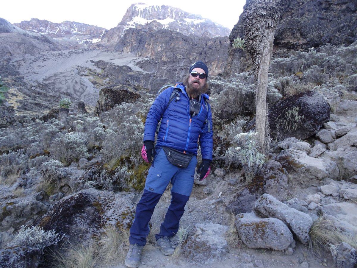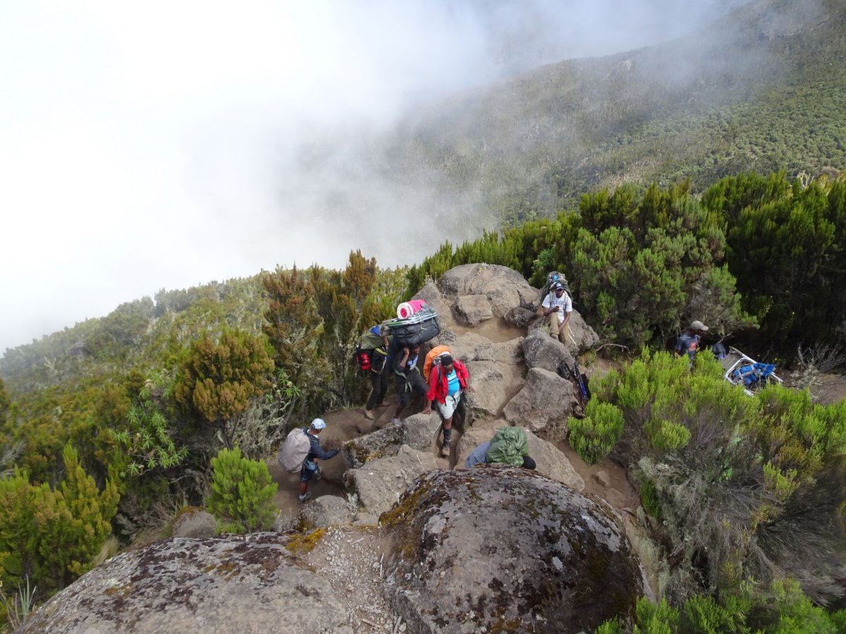 15. září 2019 jsem tedy vystupoval na letišti Kilimanjaro z letadla společnosti Qatar airlines a po vyřízení formalit a víza mě již očekává auto na hotel. Další den ráno začíná šestidenní cesta, kdy už se nemusím o nic starat. Na vrchol vede několik cest. Vybral jsem si zkrácený šestidenní trek Machame, zvaný též Whiskey Route. Můj průvodce je zkušený a má už za sebou 400 výstupů na vrchol Kilimandžára. Prostě musí to klapnout, stůj co stůj i když úspěšnost tam bývá kolem 50%. Na poslední chvíli jsem se dozvěděl, že skupina se kterou jsem měl jít na vrchol se nechala zlákat ještě nabídkou čtyřdenního safari a tudíž půjdu s celým podpůrným týmem sám. Ještě, že to počasí je slušný.