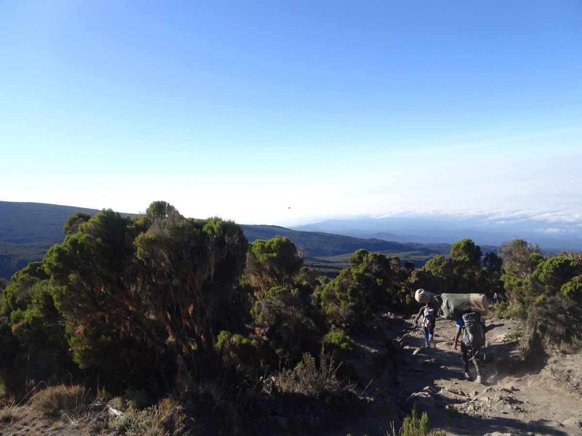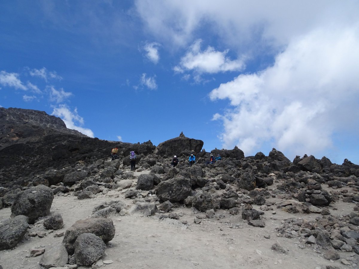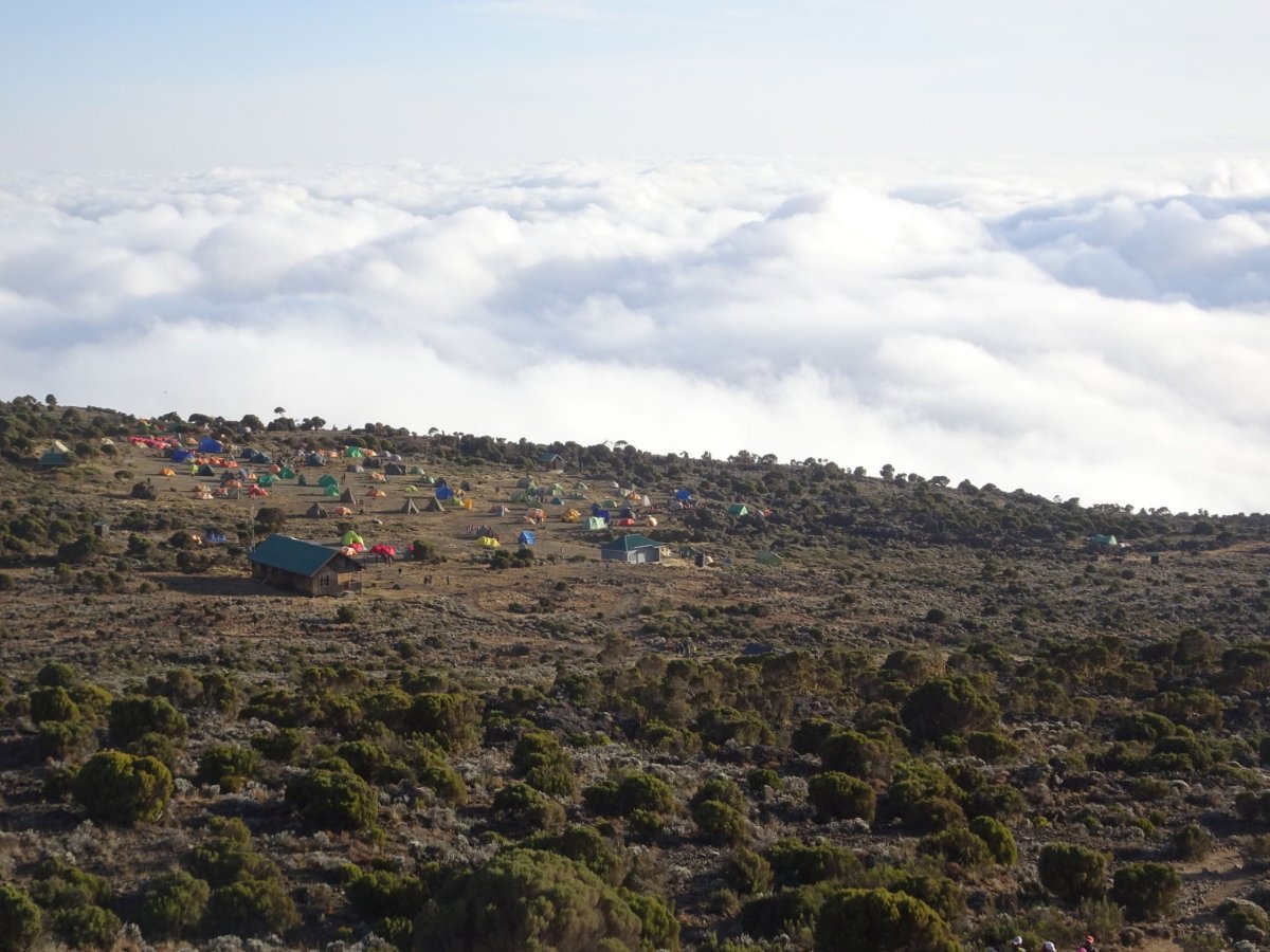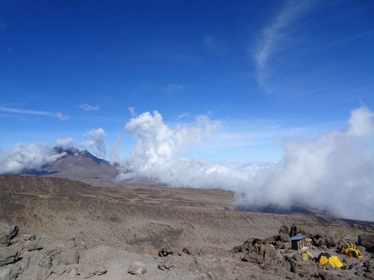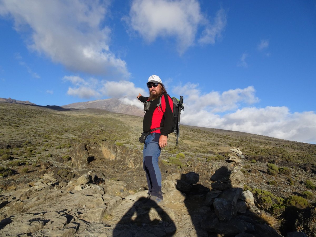 V Shira Cave Campu jsme prošli kolem jeskyně a provedli první aklimatizační výstup do 3900 m . Po návratu do kempu večeře a první usínání nad mraky. Ráno jsme se probudili do nádhernýho počasí s azurovou oblohou. Je třeba jít však dál, začíná třetí den ještě stále pohodového treku. Rostlin už pomalu ubývá a za chvíli půjdeme kamenitou krajinou bez vegetace.