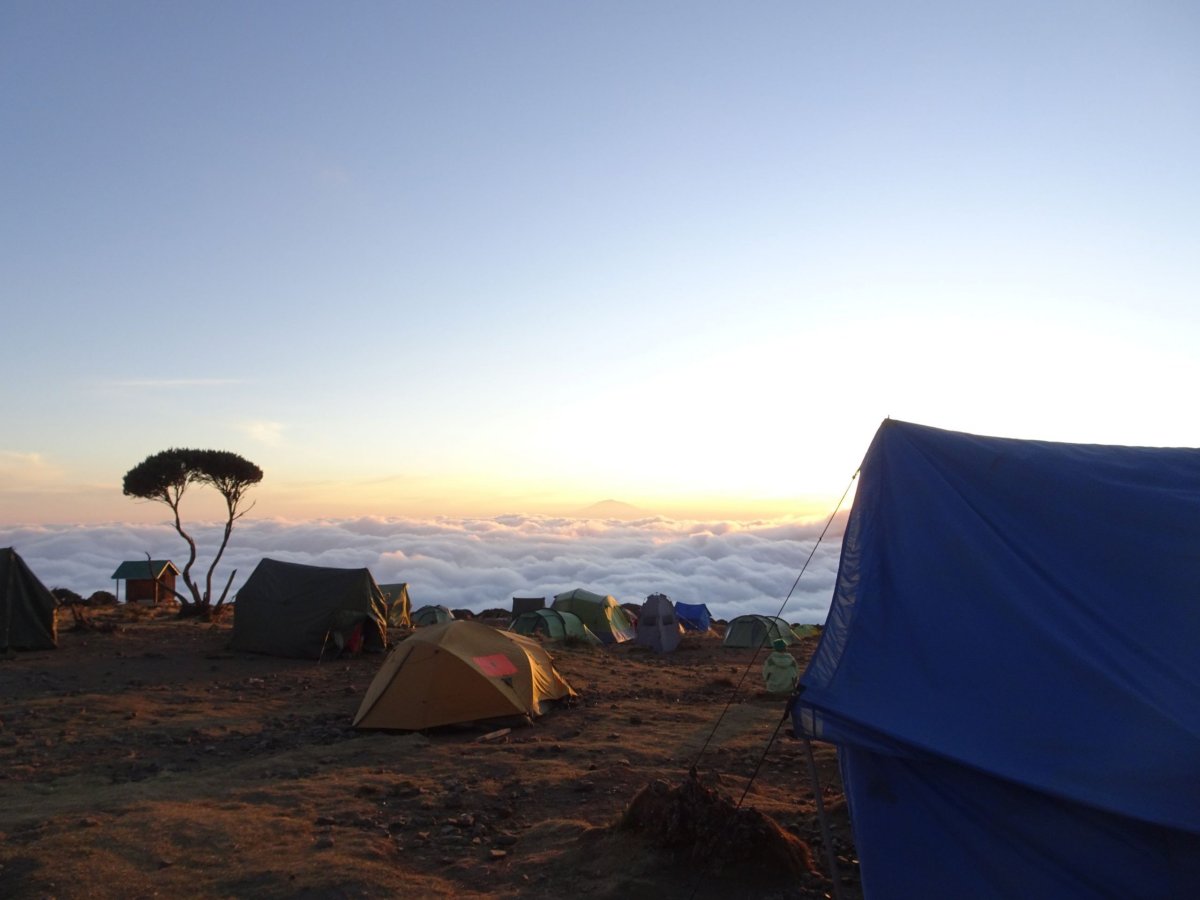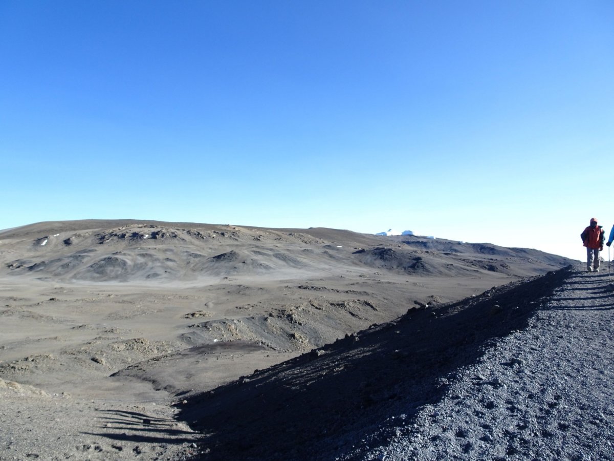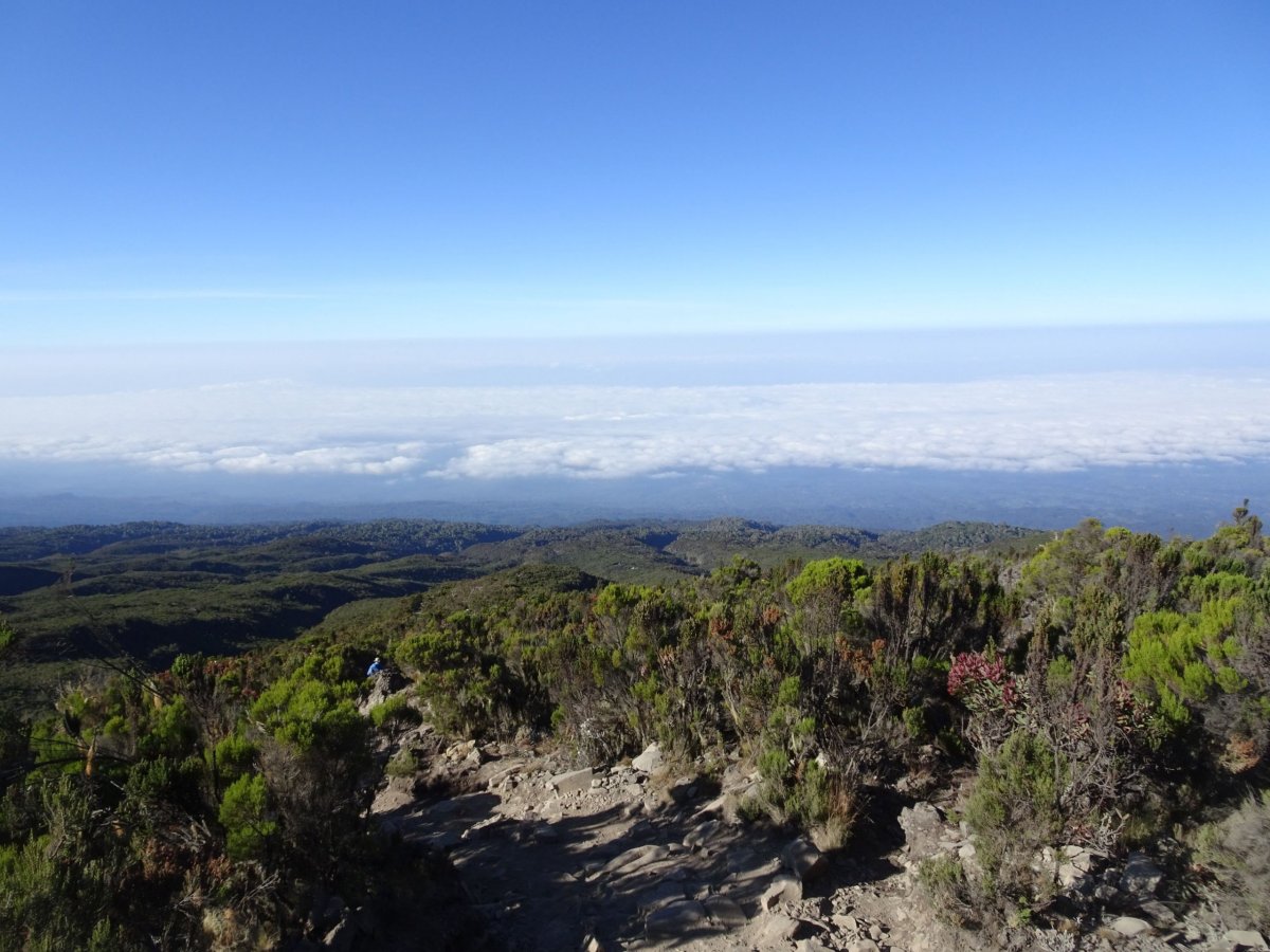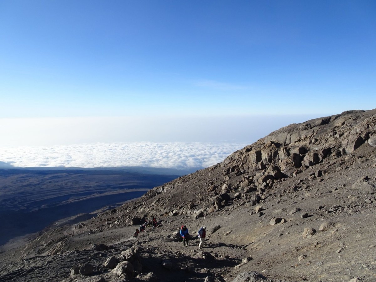 V Shira Cave Campu jsme prošli kolem jeskyně a provedli první aklimatizační výstup do 3900 m . Po návratu do kempu večeře a první usínání nad mraky. Ráno jsme se probudili do nádhernýho počasí s azurovou oblohou. Je třeba jít však dál, začíná třetí den ještě stále pohodového treku. Rostlin už pomalu ubývá a za chvíli půjdeme kamenitou krajinou bez vegetace.