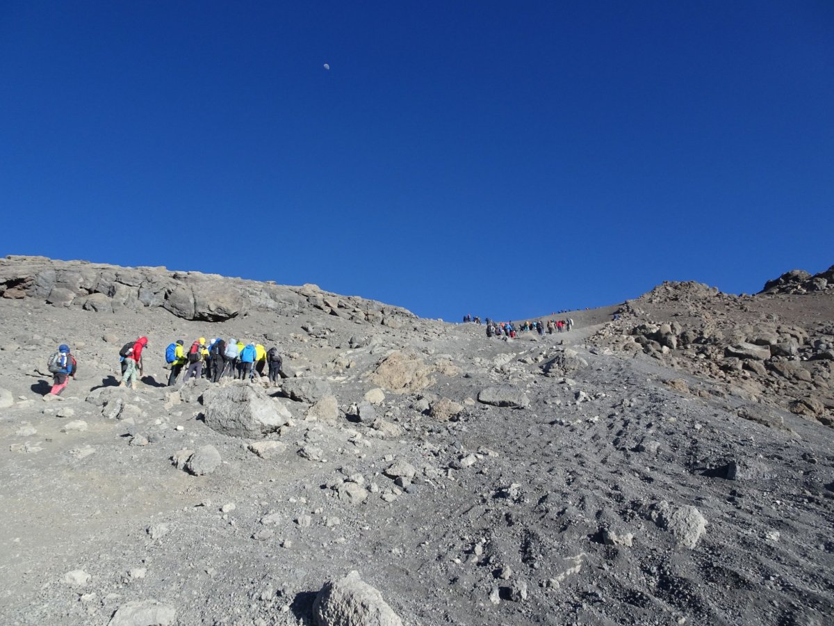 Cesta do posledního Barafu Campu trvala 8 hodin a s ohledem na nadmořskou výšku začala obtížnost výstupu měnit svoje parametry. Ještě, že počasí, na horách tak zrádné, drželo neustále výbornou úroveň. Bylo jasno a na cestu stačilo funkční triko s dlouhým rukávem. Nebyl čas na dlouhé otálení, jelikož závěrečný výstup na vrchol byl naplánován na půlnoc, bylo potřeba regenerovat síly. Hned po předčasné večeři v 17 h jsem ulehnul k spánku s nastaveným budíkem na půlnoc.