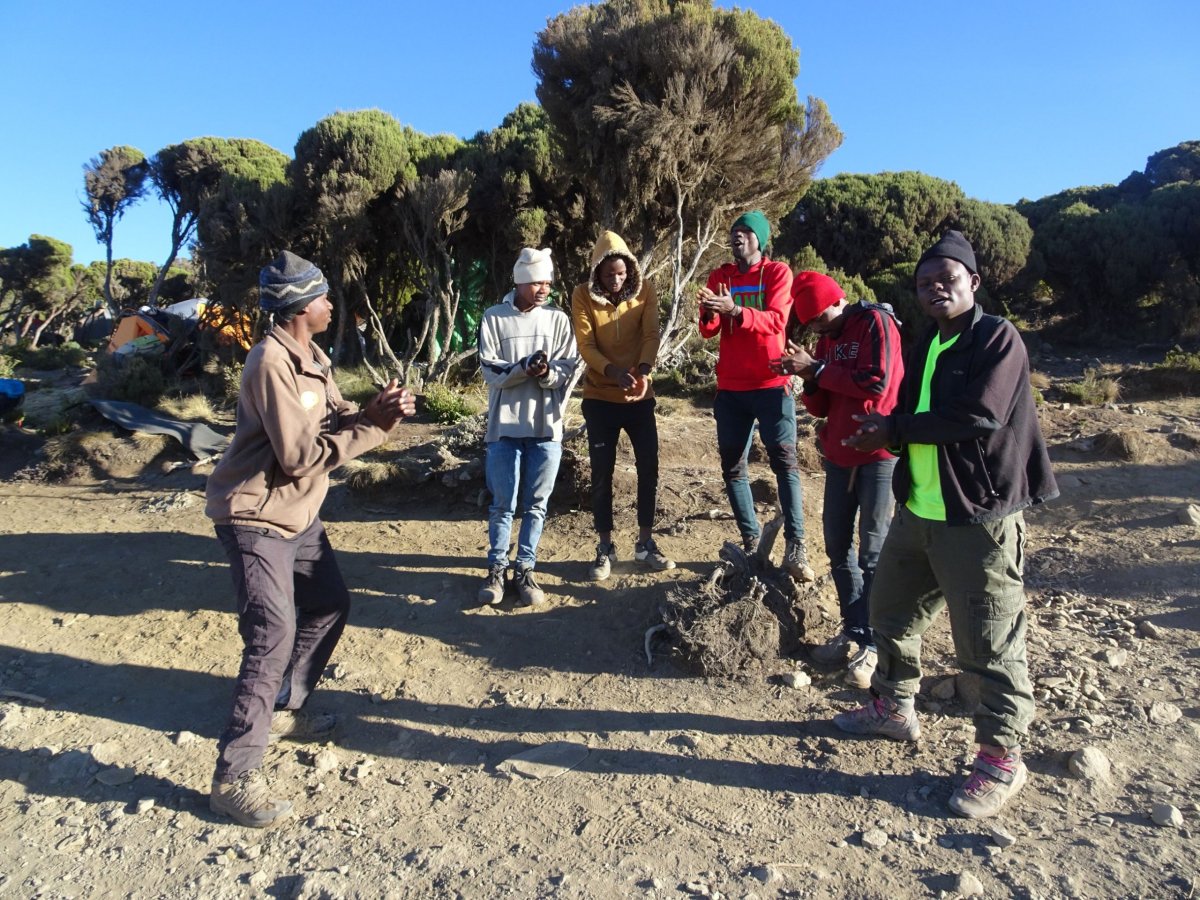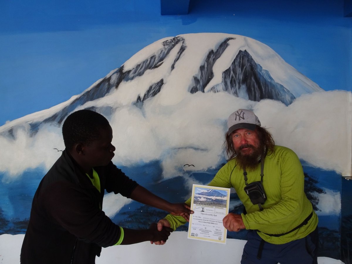 Měli jsme trochu zpoždění a tak jsme rozložili stany místo v Mweka Campu, tak již v High Campu, kde jsme strávili poslední noc. Šestý den ráno uspořádal obslužný tým oslavu šťastného zdolání hory a zpěvem a tancem vyjádřili radost z úspěchu. Ten den ráno nás pak čekala o něco delší trasa k výstupní bráně Mweka. Následoval odvoz na hotel a potom předání diplomu. Závěrem bych ještě dodal, na základě svých vlastních zkušeností, že nesdílím názor Saida a tvrdím, že výstup na Kilimandžáro je podstatně těžší, než na Toubkal.