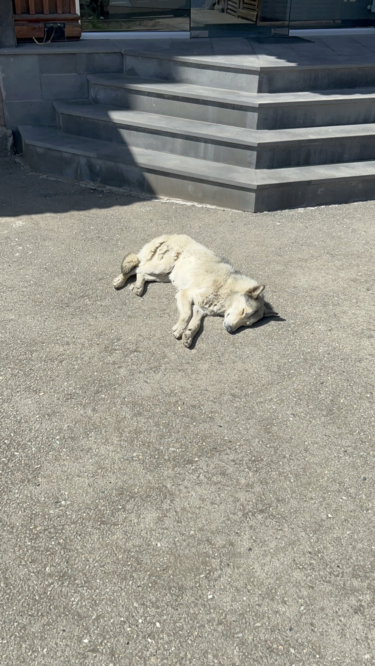 Pod pevností se můžete podívat na dům Stalina, je zde i muzeum, které jsem nenaštívil. Na náměstí jsem si dal něco k jídlo. Ale přiběhla ke mně fenka a chtěla taky. :D