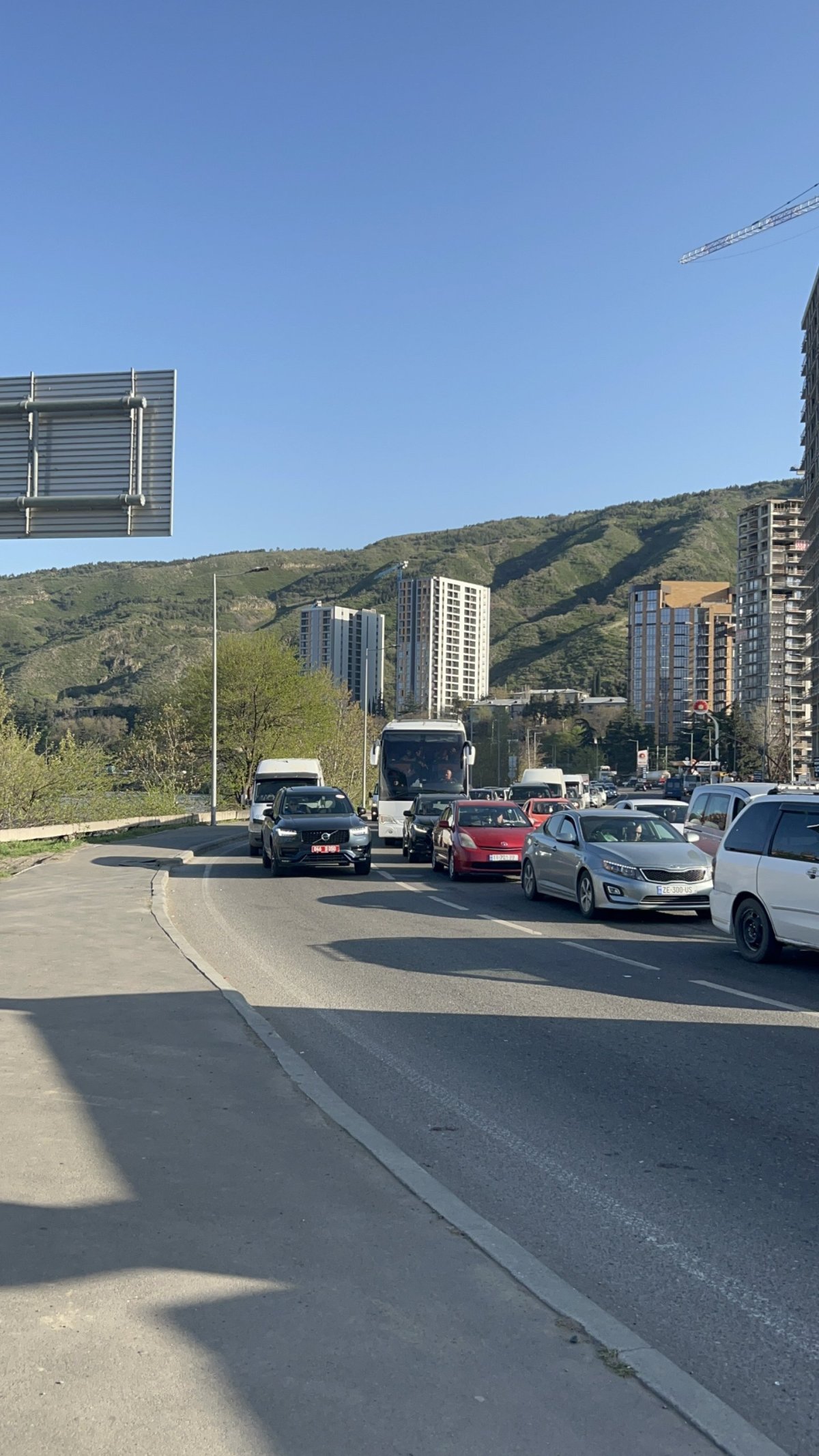 Po asi 4 hodinách naštěstí povídá, že jsme v Tbilisi, hlavním městě Gruzie. Hned jsme se zasekli v nekonečně dlouhé koloně. Bohužel jsem musel vystoupit, protože bylo rychlejší dojít zbytek pěšo. :)